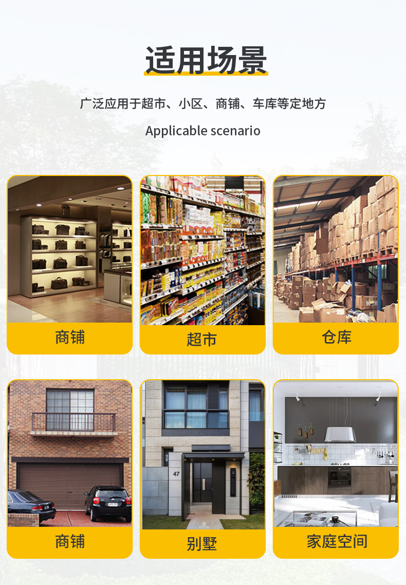 - 使用范围:商铺、消防门、写字楼、超市