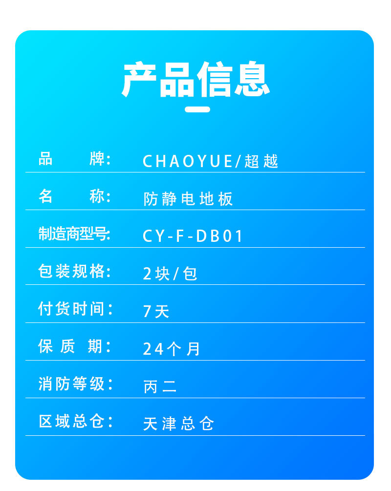 600×600×40mm钢制陶瓷面原色CHAOYUE/超越CY-F-DB01陶瓷防静电地板2块/包600×600×40mm