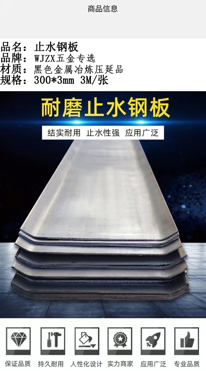 300×3mm 295下料 3米每根镀锌黑色金属冶炼压延品295下料3m3mm止水钢板宽300mmWJZX/五金专选止水钢板米--
