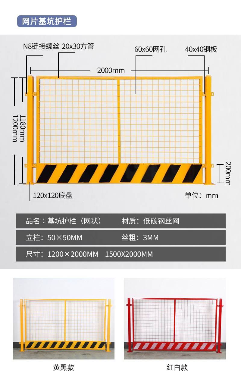 碳钢2m白+红1.2m基坑护栏WJZX/五金专选1.2m×2m基坑护栏套-带螺丝 6.7kg