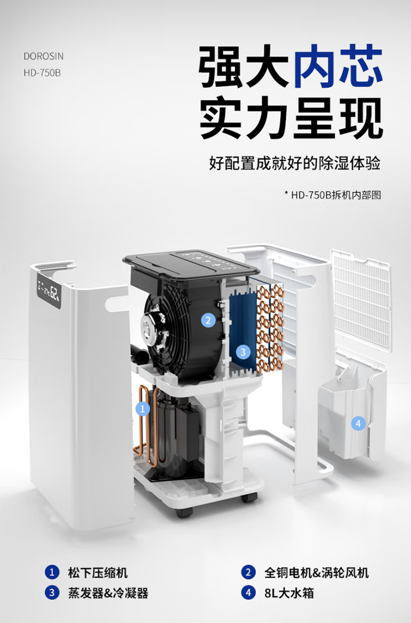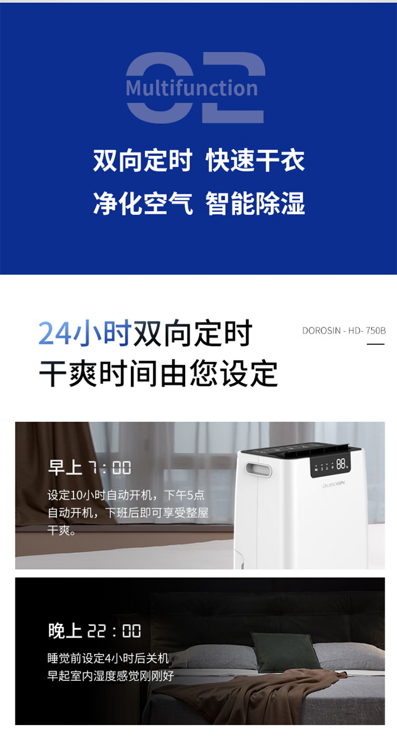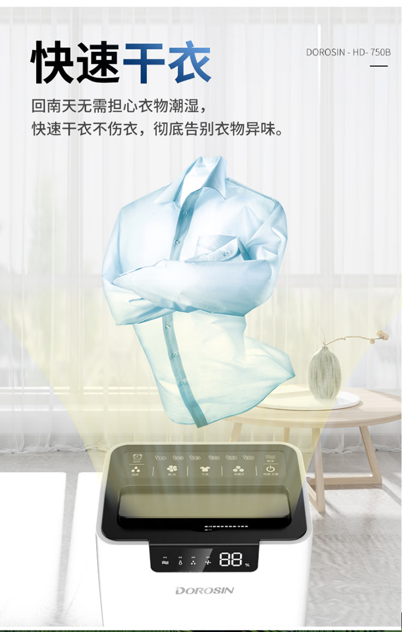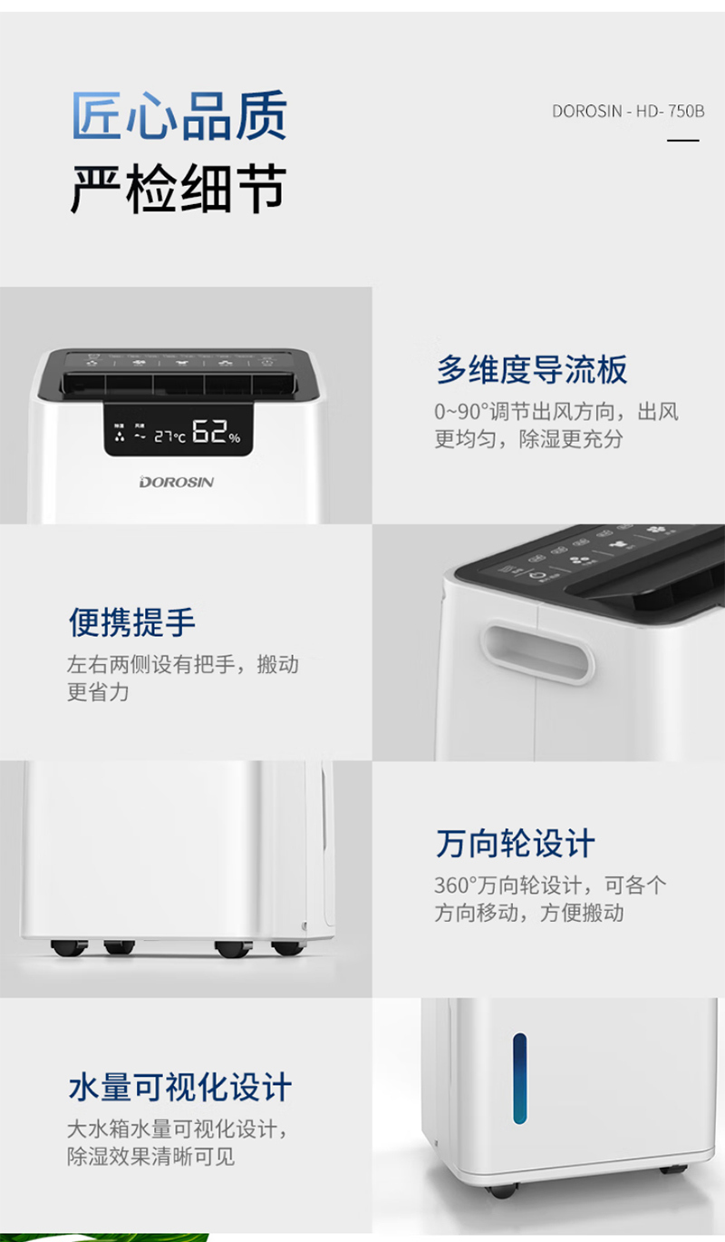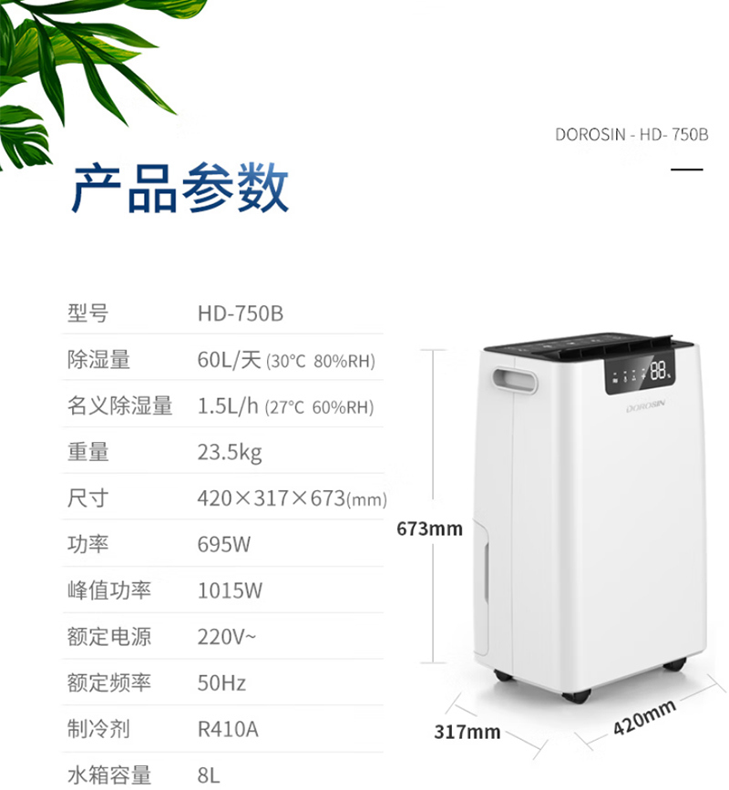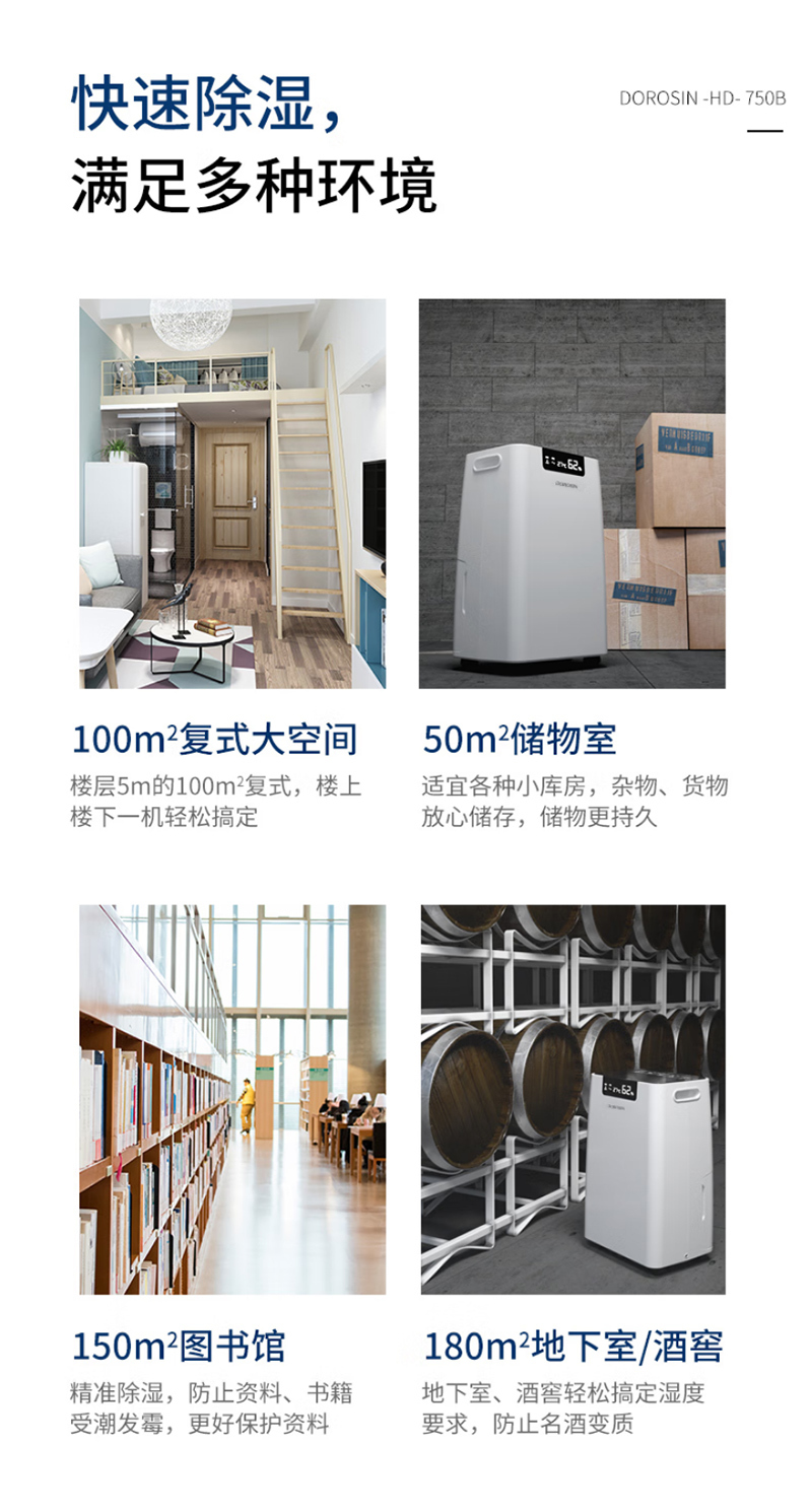 HD-750B22069560台30~1800420×317×673mmDOROSIN/多乐信商用除湿机-60L/d 220V 30~180m² 不含安装服务
