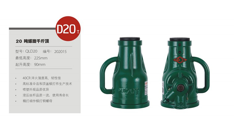 - 核心规格:载重20t 起升高度90mm 最低高度225mm