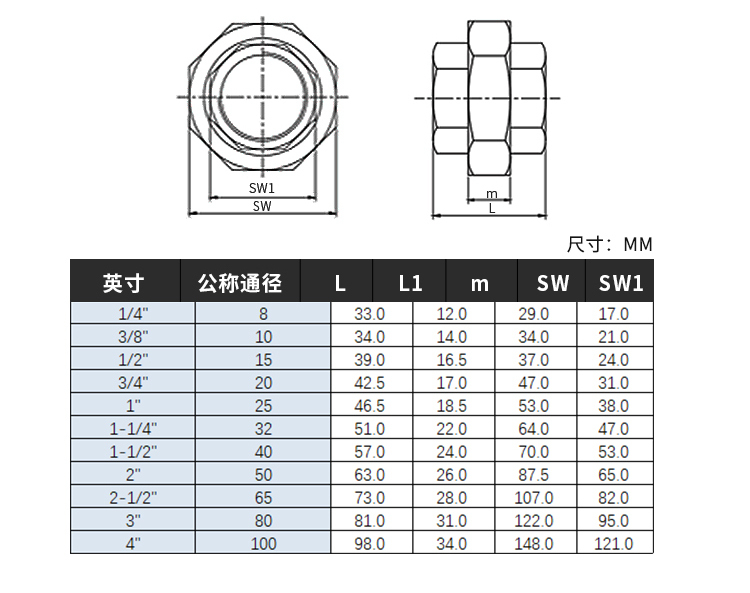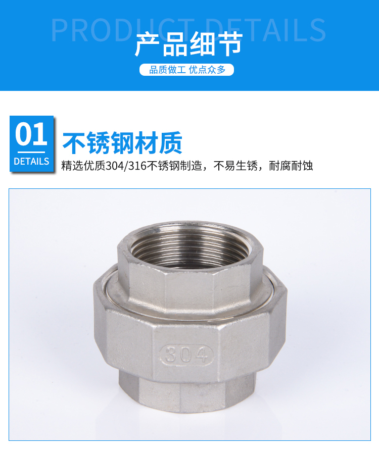 - 产品名称:304不锈钢丝扣平面活接