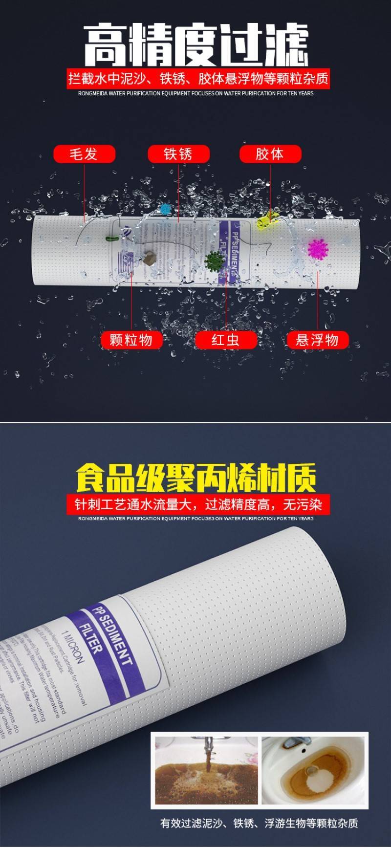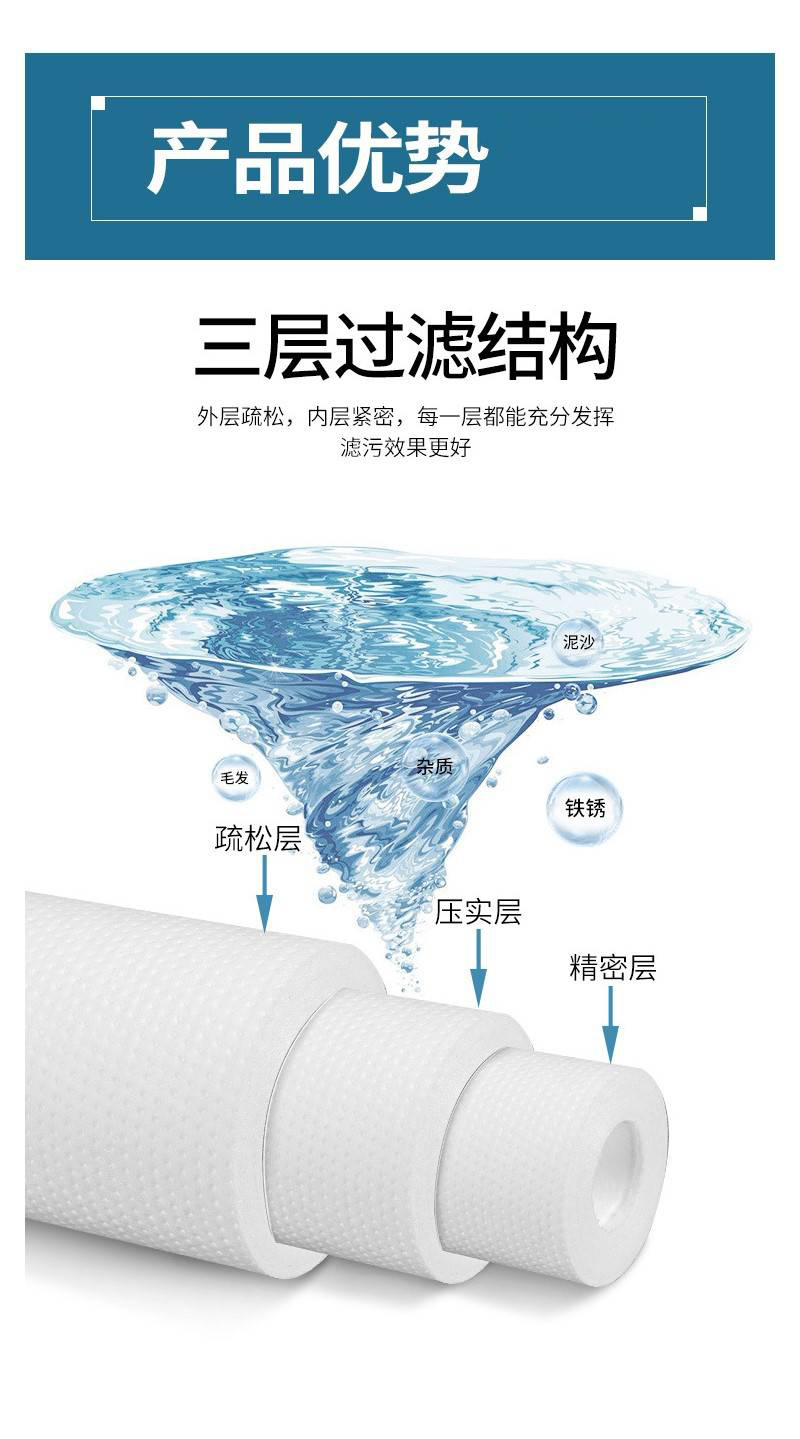 - 产品名称:通用家用商用净水器针刺PP棉滤芯