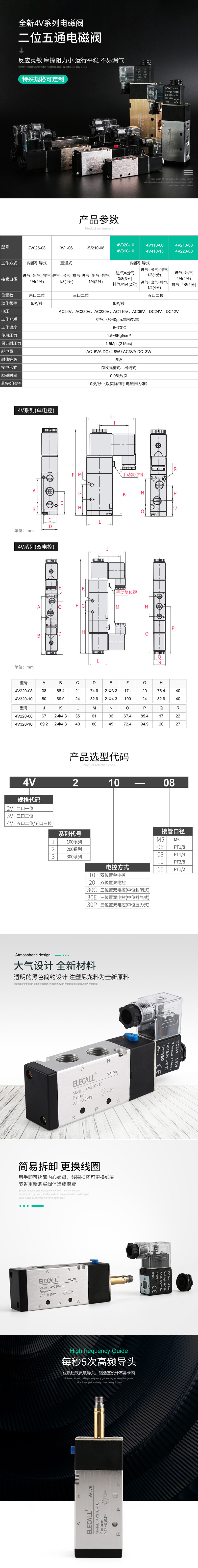 4V210-08PT1/4AC220V两位五通只ELECALL/伊莱科气动电磁阀-AC220V