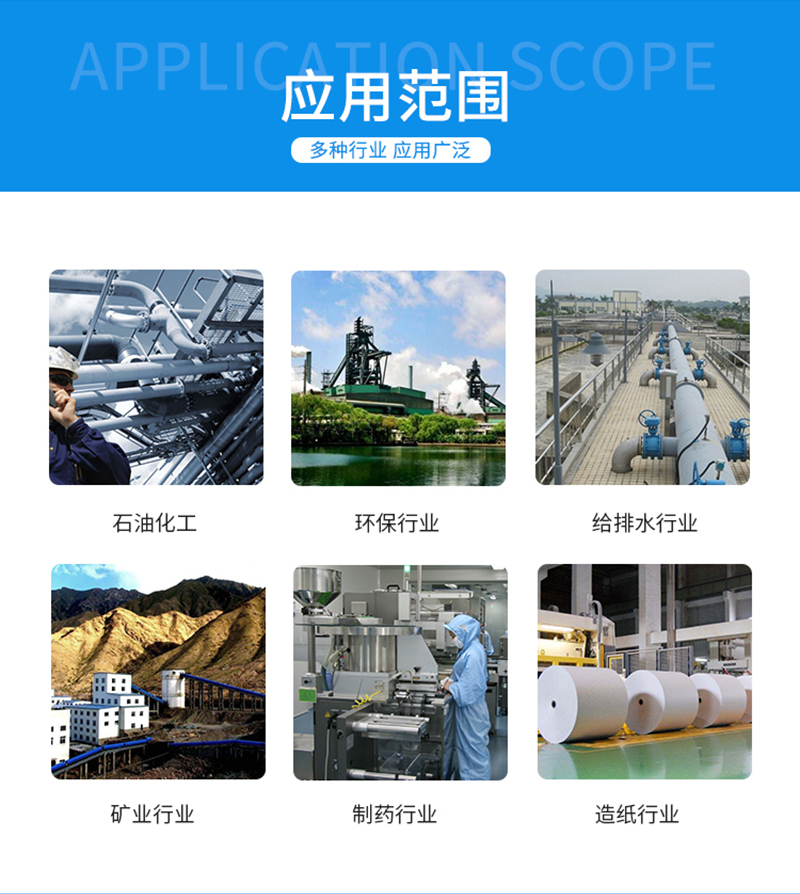 ·广泛适用于石油化工、环保行业、给排水行业、矿业、制药行业、造纸行业等