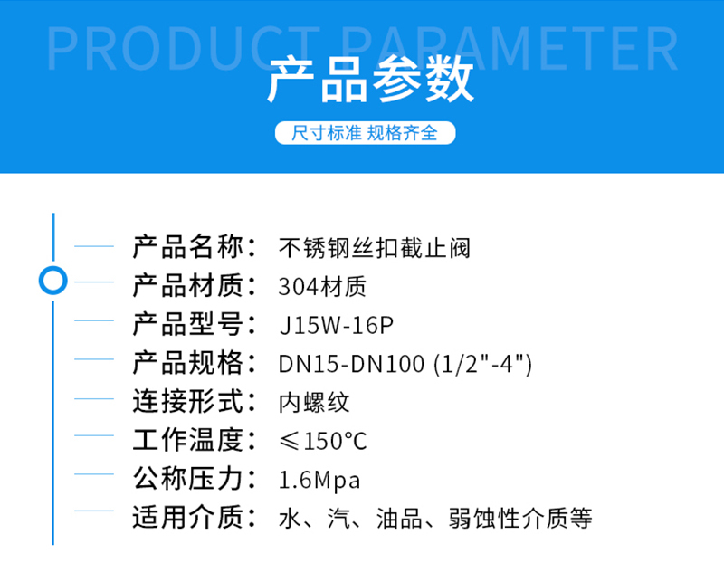 - 产品名称:J11W系列304不锈钢丝扣截止阀