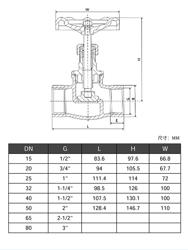J11W-16P-DN501阀瓣非平衡式直通式DN50PN16ZG/PT/Rc内螺纹-46~300℃128.4mm本体(W)304J11W-16P304不锈钢RG/锐阁J11W系列304不锈钢丝扣截止阀-内螺纹接口 公称压力16bar