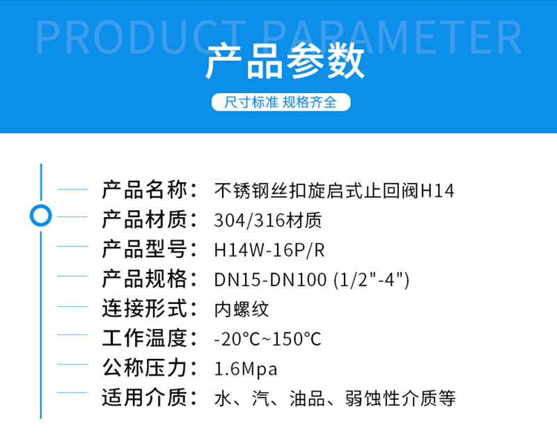- 产品名称:H14W系列304不锈钢丝扣止回阀
