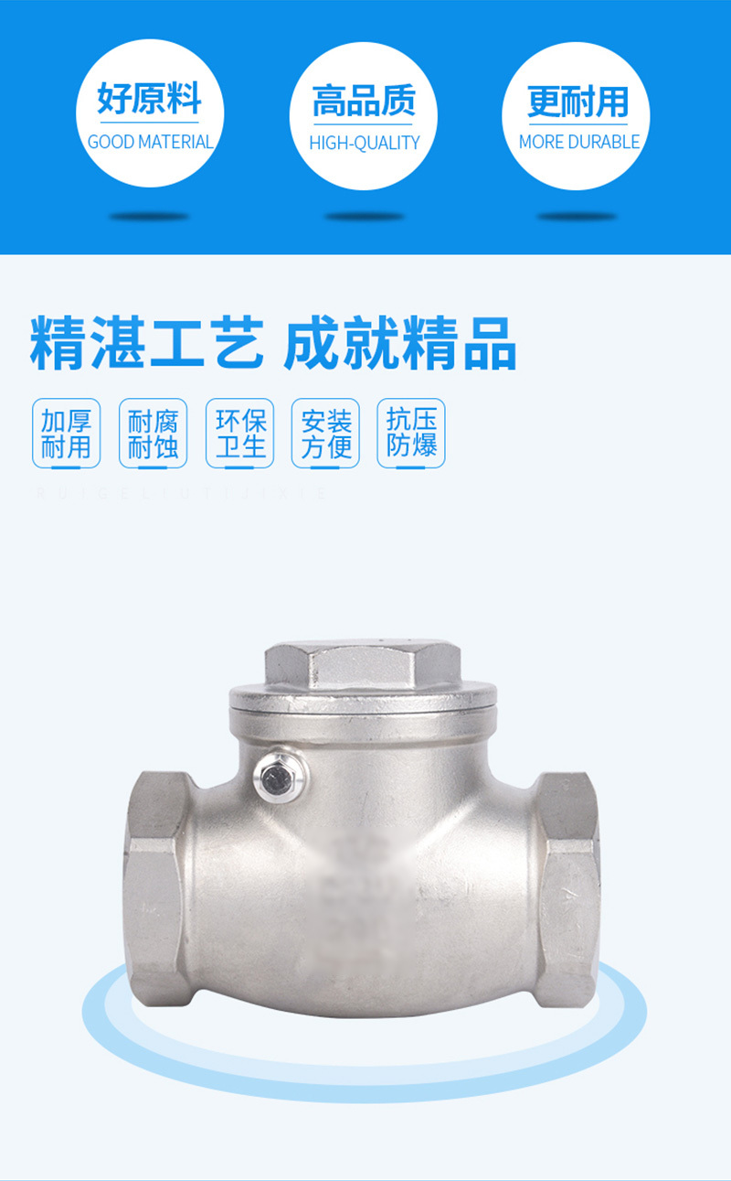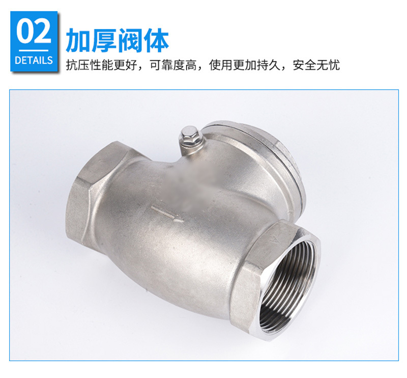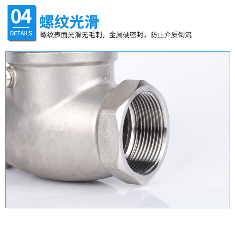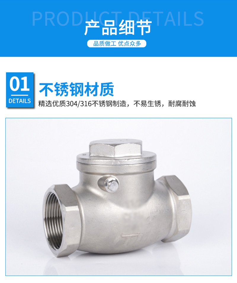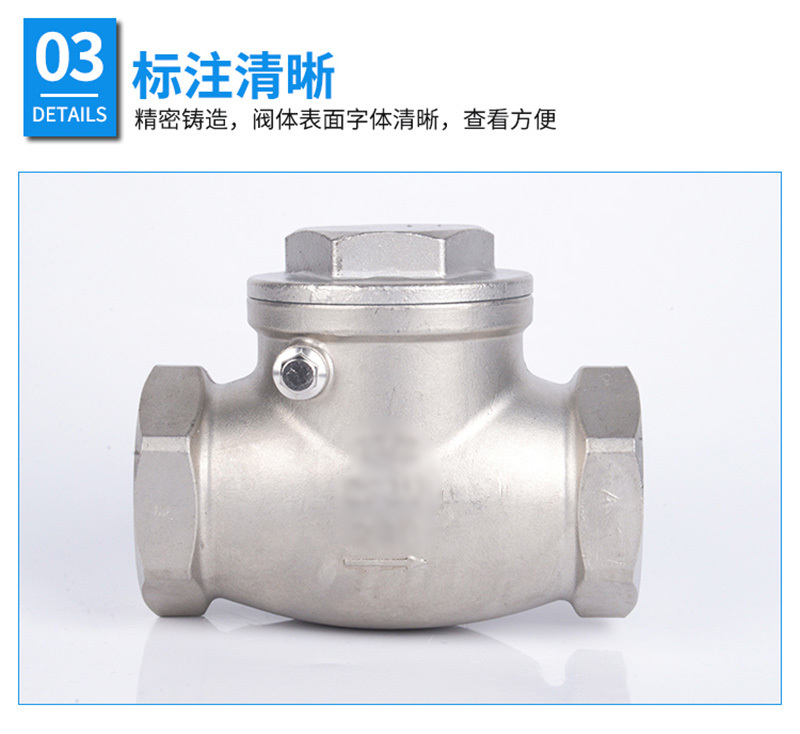 ·不锈钢材质,精选优质304/316不锈钢制造,不易生锈,耐腐耐蚀 ·加厚阀体,抗压性能更好,可靠度高,使用更加持久,安全无忧 ·标注清晰,精密铸造,阀体表面字体清晰,查看方便 ·螺纹光滑,螺纹表面光滑无刺,金属硬密封,防止介质倒流