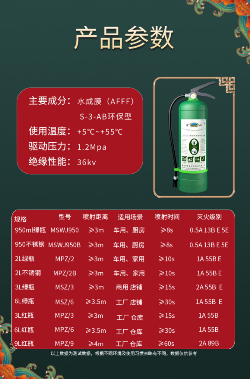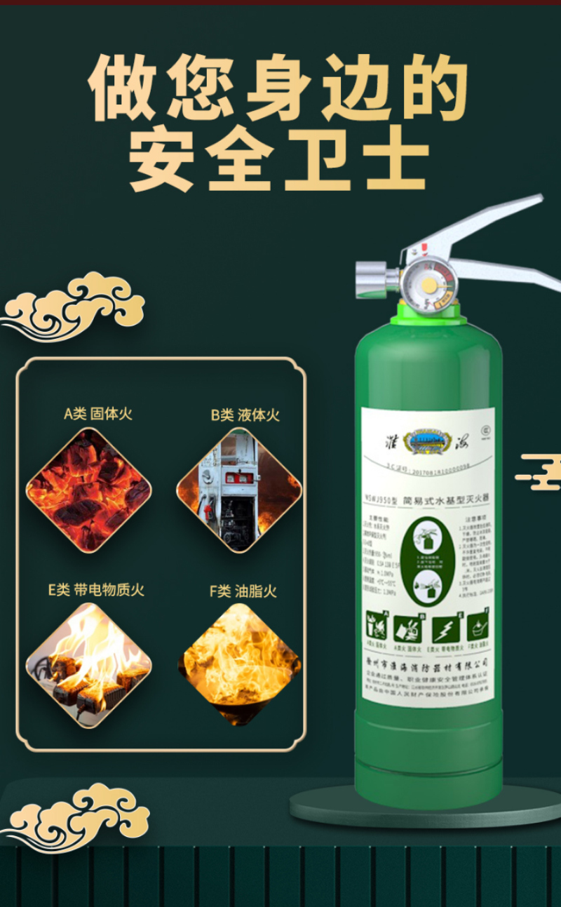 - 产品名称:手提式水基型灭火器