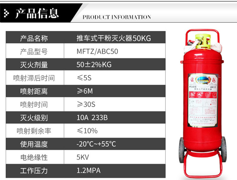 ·推车式干粉灭火器 ·50kg ·品质可靠,坚固耐用