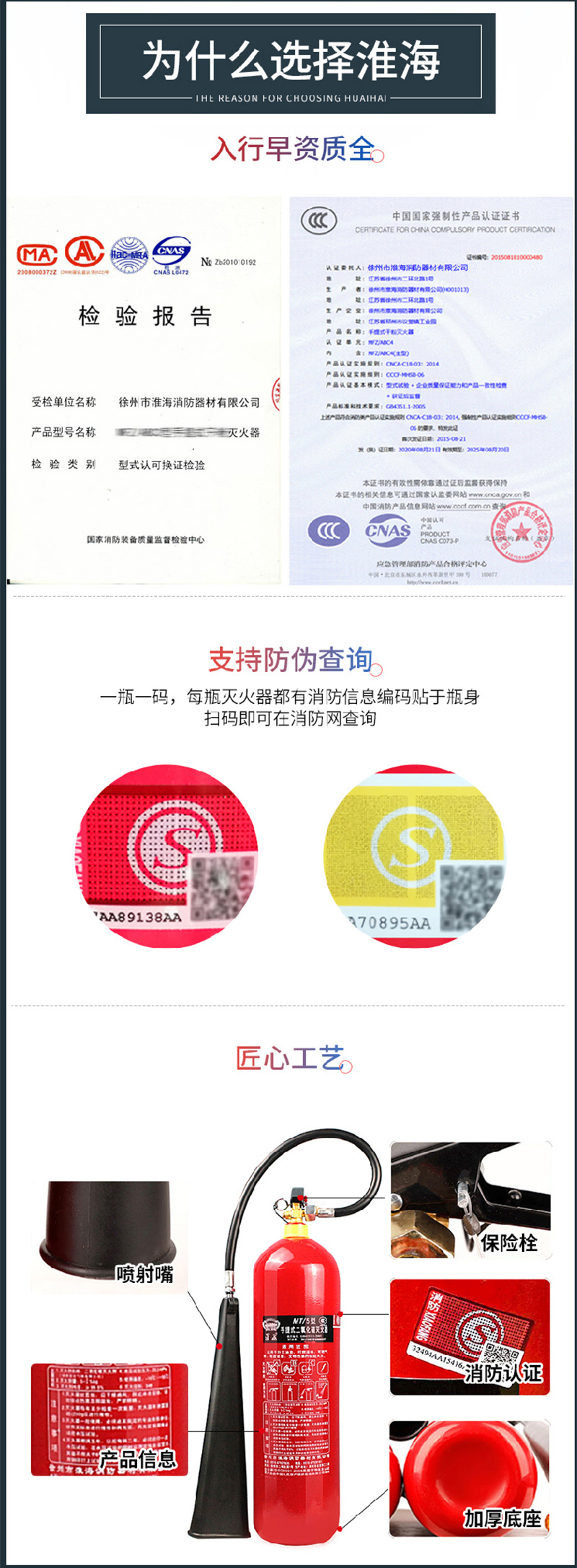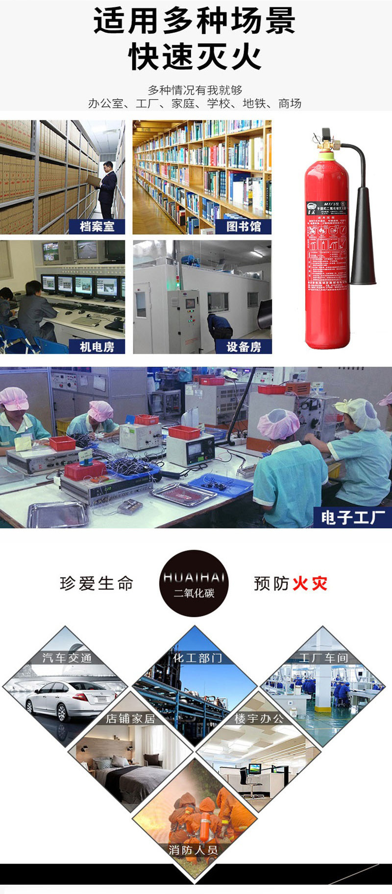 手提式3kg个二氧化碳2个/箱无红色HUAIHAI/淮海手提式二氧化碳灭火器MT/32个/箱3kg