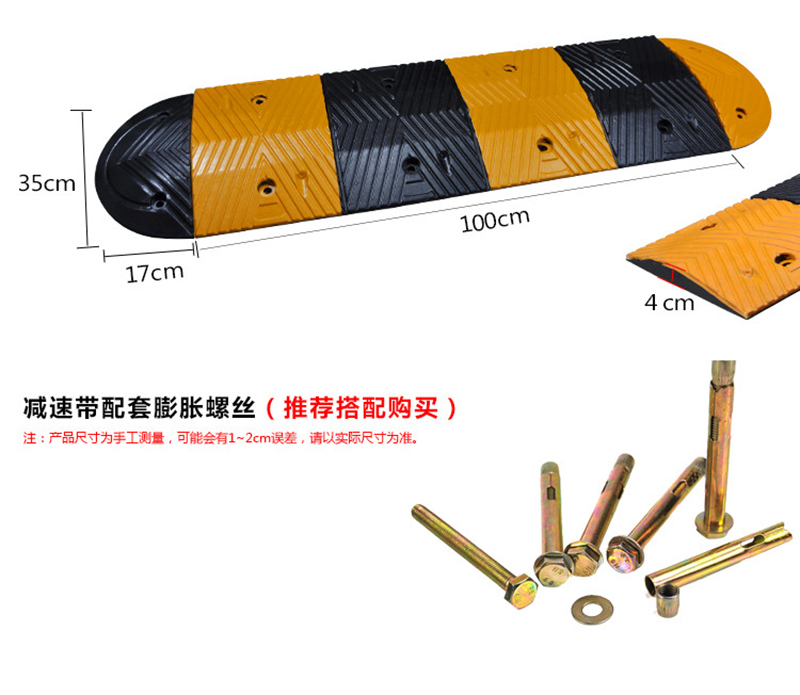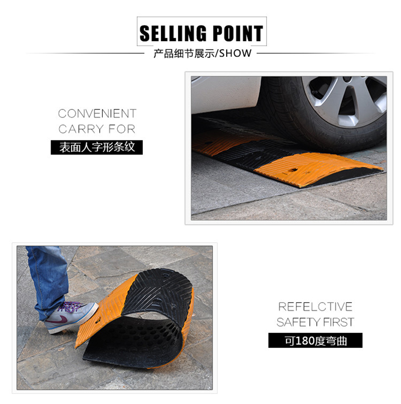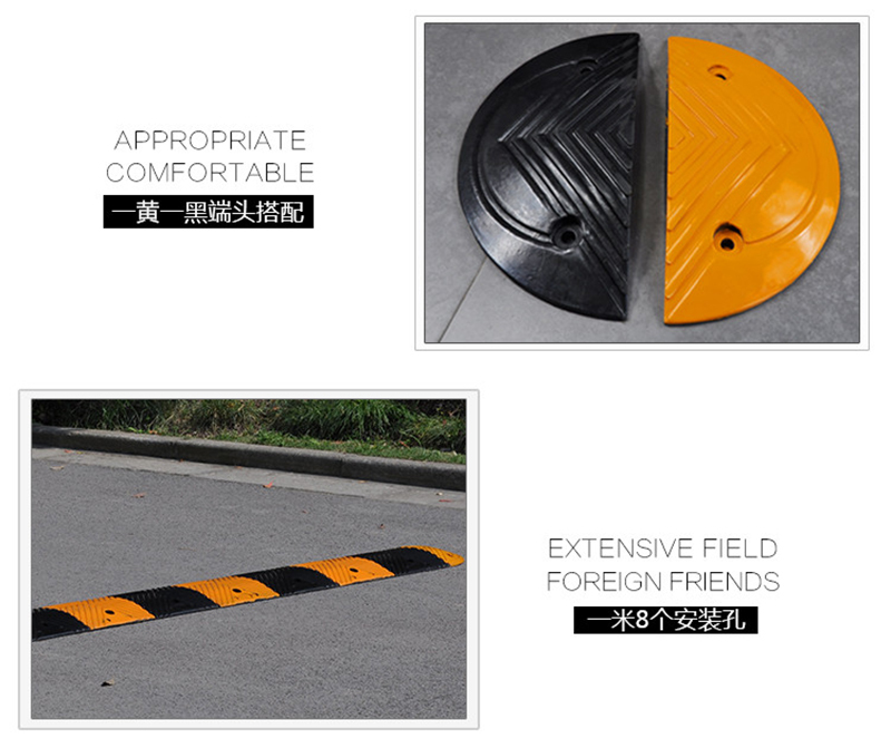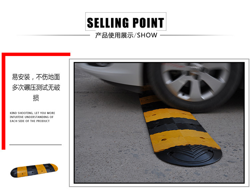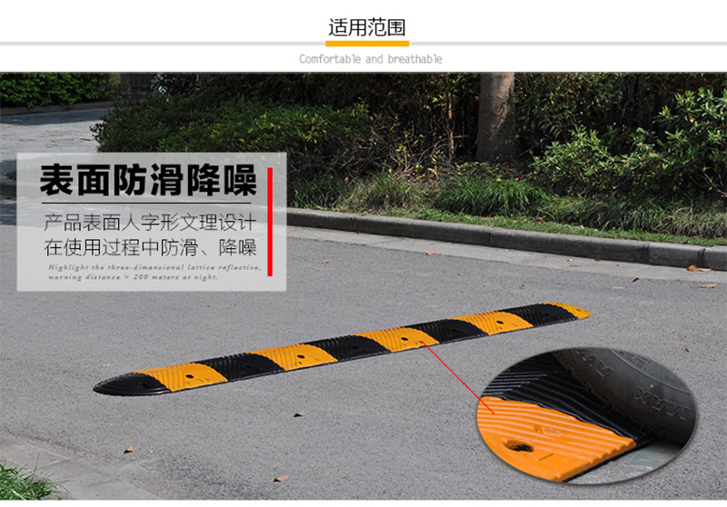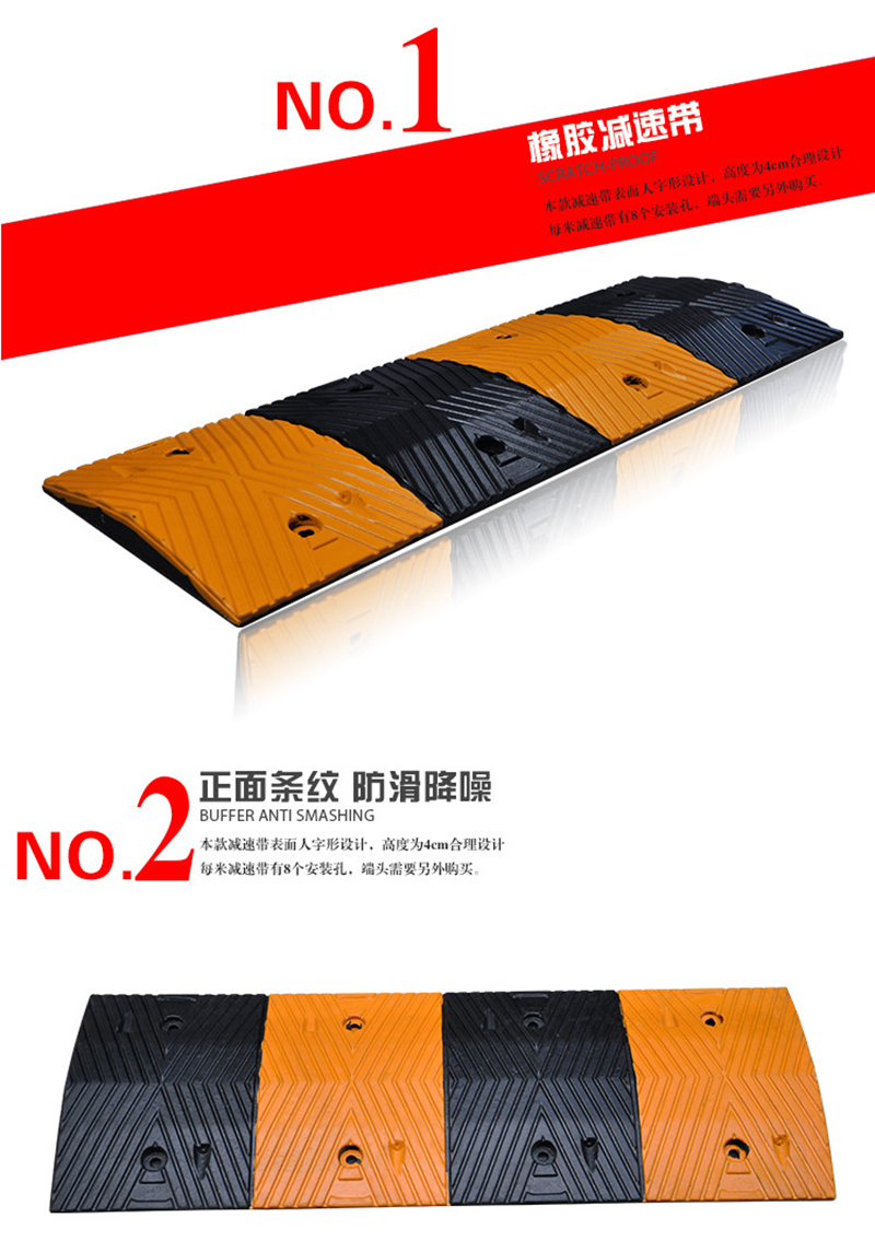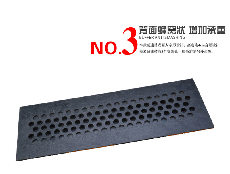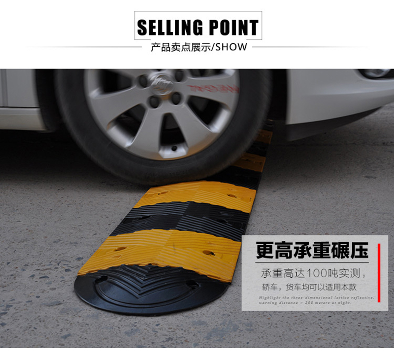 ·采用优质原胶热压硫化成型。 ·不分层抗碾压,表面胶质弹性好。 ·适合地下车库转角坡道减速