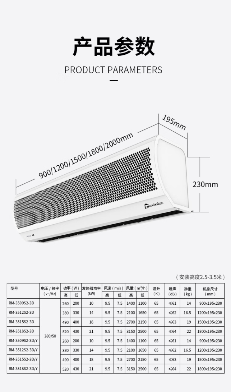 - 产品名称:35S2大热风幕机(带遥控 铝合金风轮)