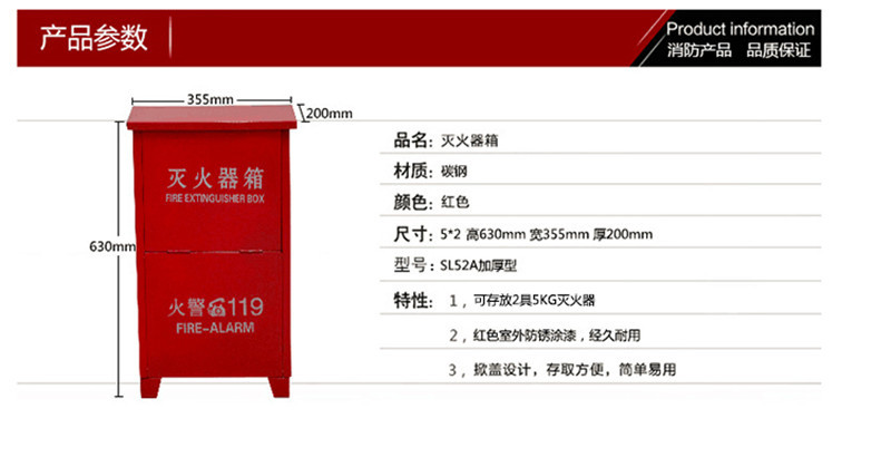 ·可存放5kg干粉灭火器2具,加厚型;经久耐用;存放方便