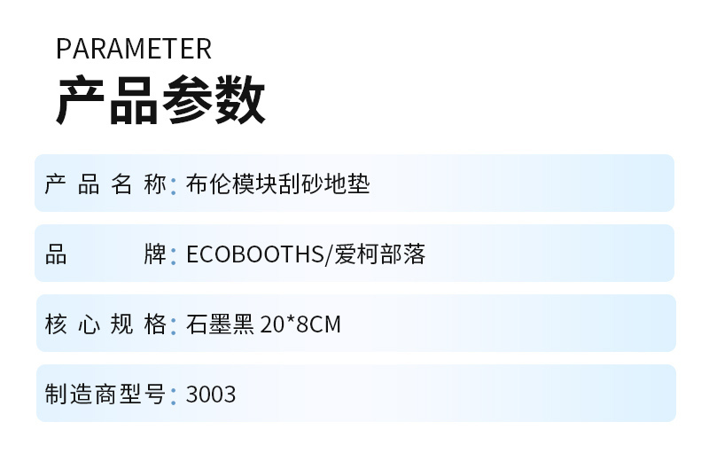 3003其他花纹毯面类复合地垫PVC石墨黑10mm200×80mm片ECOBOOTHS/爱柯部落布伦模块刮砂地垫-石墨黑 20*8cm