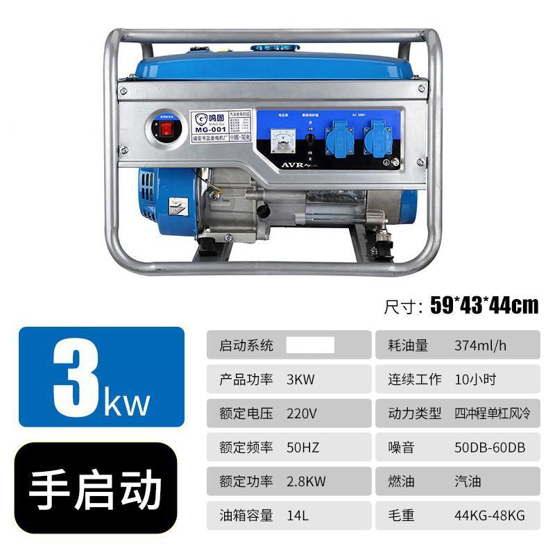 3kW 手启动+烧汽油手启动标配3000W台0.374L/h14LMINGGU/鸣固汽油发电机-220V单相静音发电机
