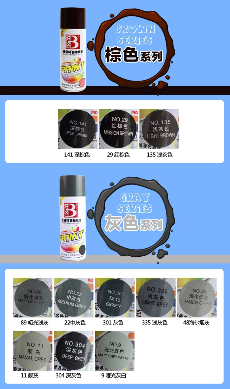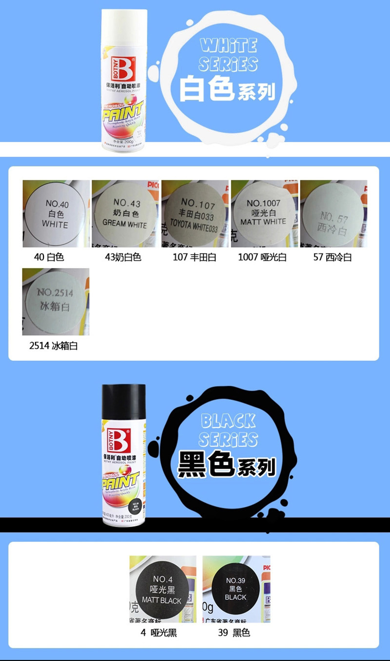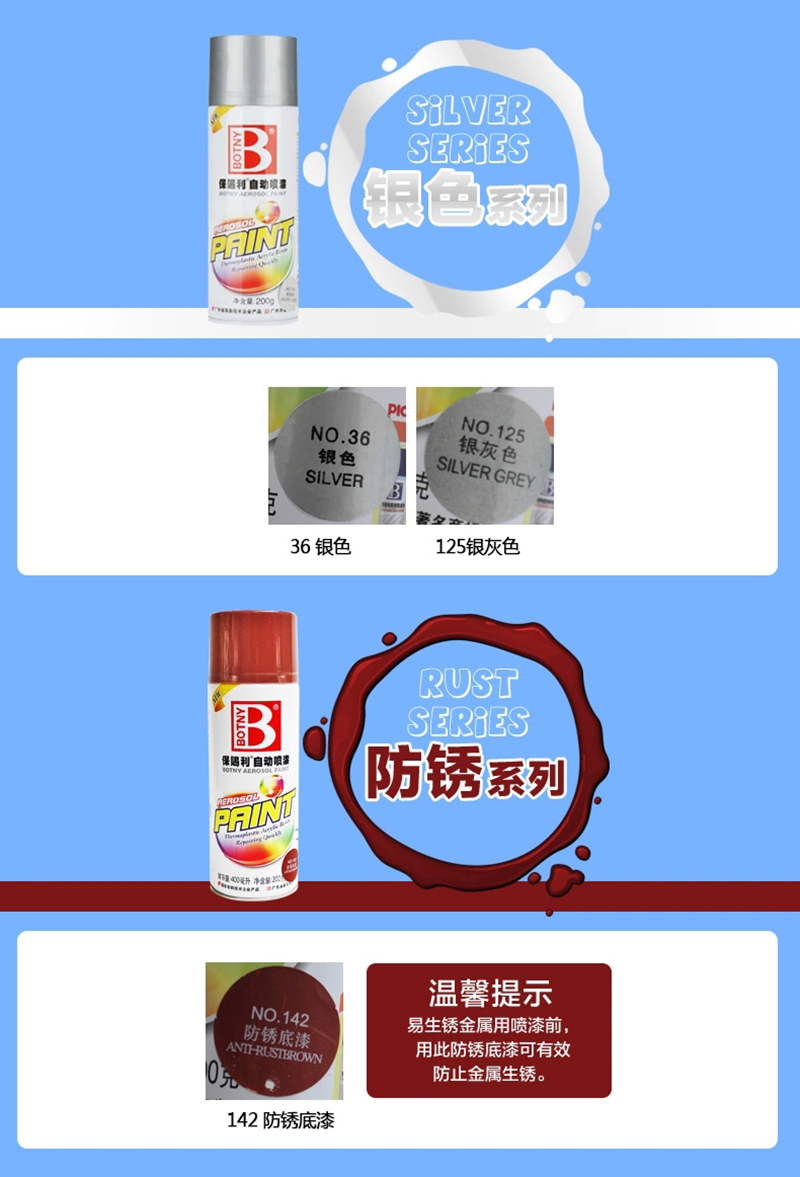 400mL125银灰色箱1950无40012罐/箱BOTNY/保赐利B-1088高级自动喷漆12罐/箱125银灰色 400mL×12罐