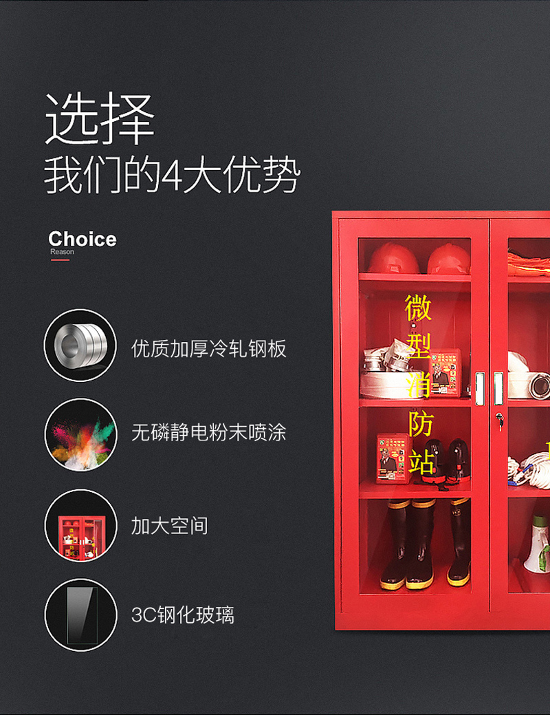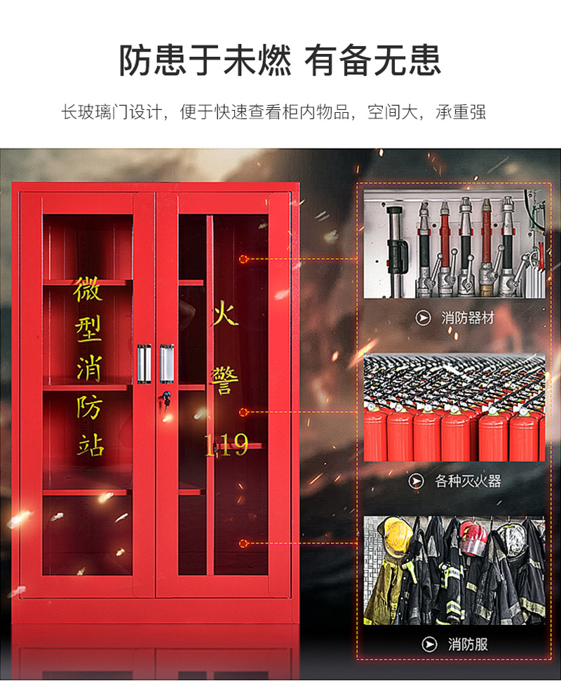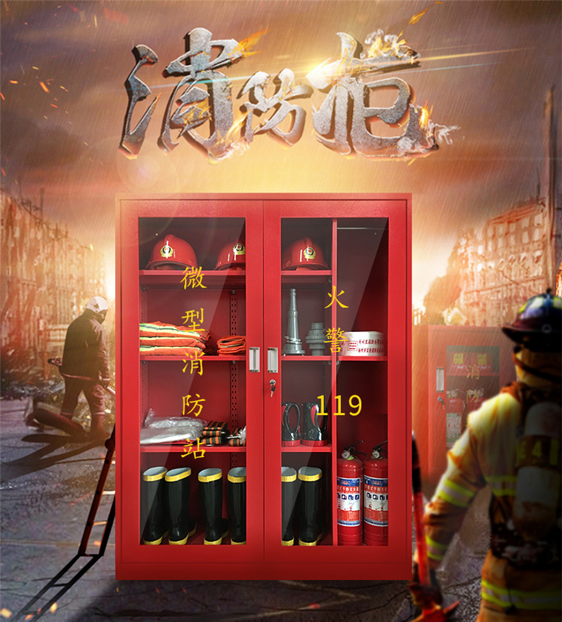 900×390×1400mm加厚钢板+3C钢化玻璃门四层二开门红色双人配置否台尺寸900×390×1400mmJOYH/震海两人套餐消防站-配四块隔板 红色