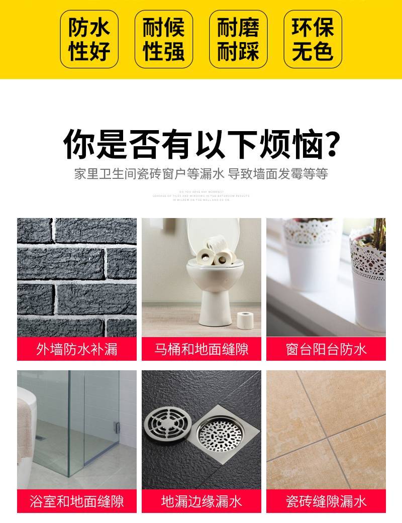 ·外墙防水补漏,马桶地面缝隙,窗台阳台防水,浴室地面防水,地漏、瓷砖缝隙