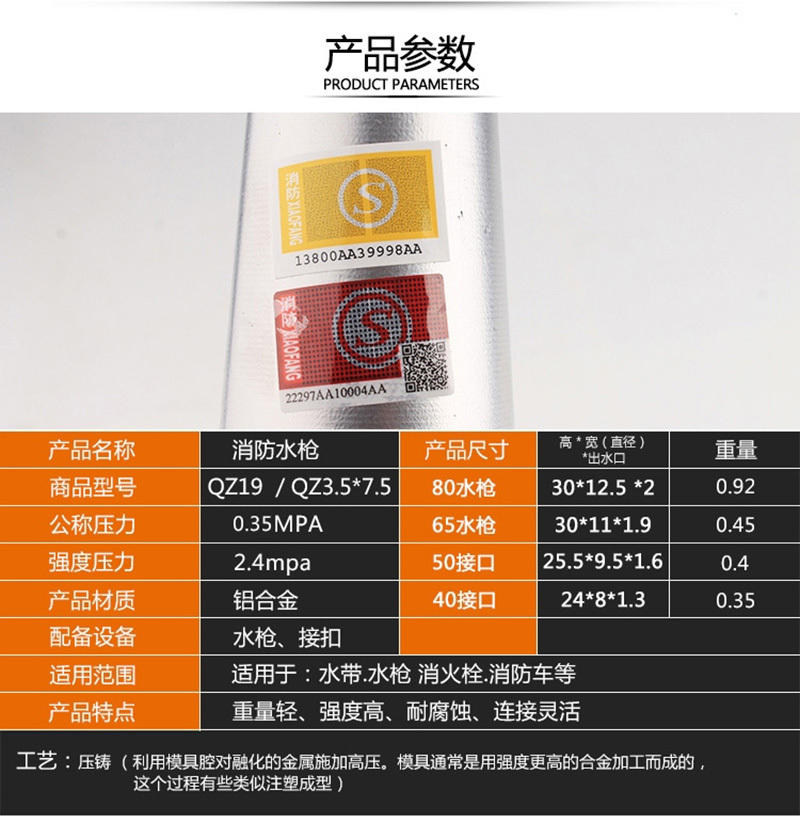 0.35Mpa65mm充实水流个DONGXIAO/东消消防直流水枪QZ3.5/7.5(QZ19)-口径65mm 工作压力0.35MPa