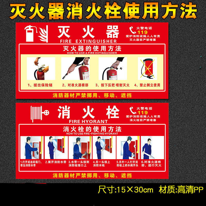 15×30cmPP背胶消火栓的使用方法张DH/鼎红消火栓的使用方法安全标识贴纸-15×30cm