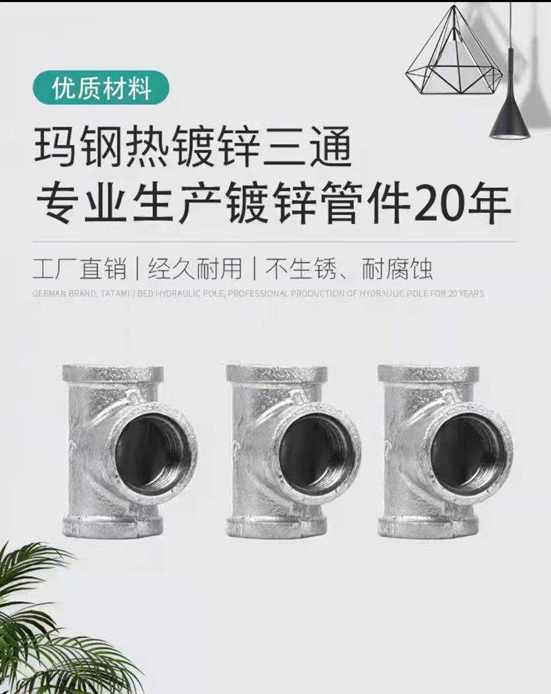 DN20DN20120g本色热镀锌ZJLC/中锦联创镀锌可锻铸铁三通-120g 锌本色