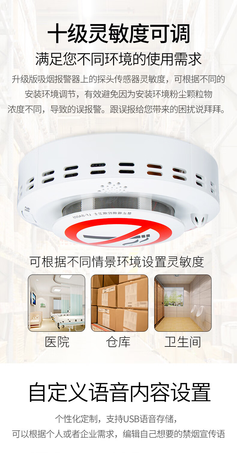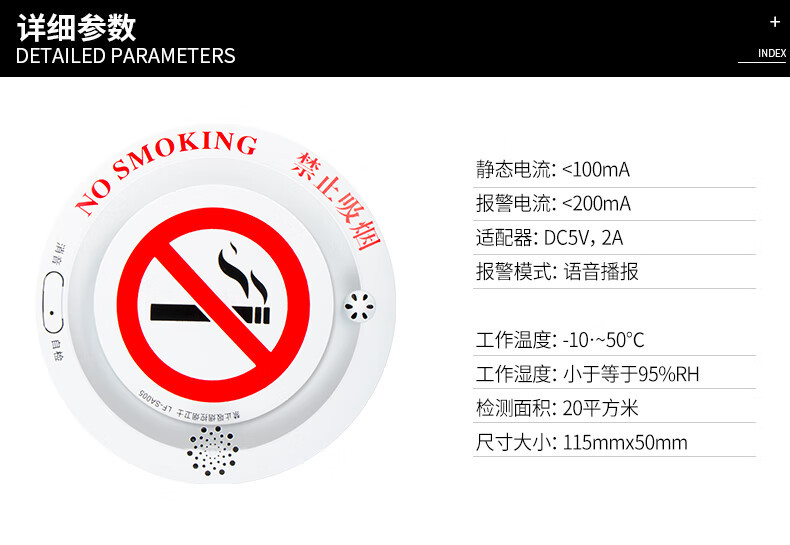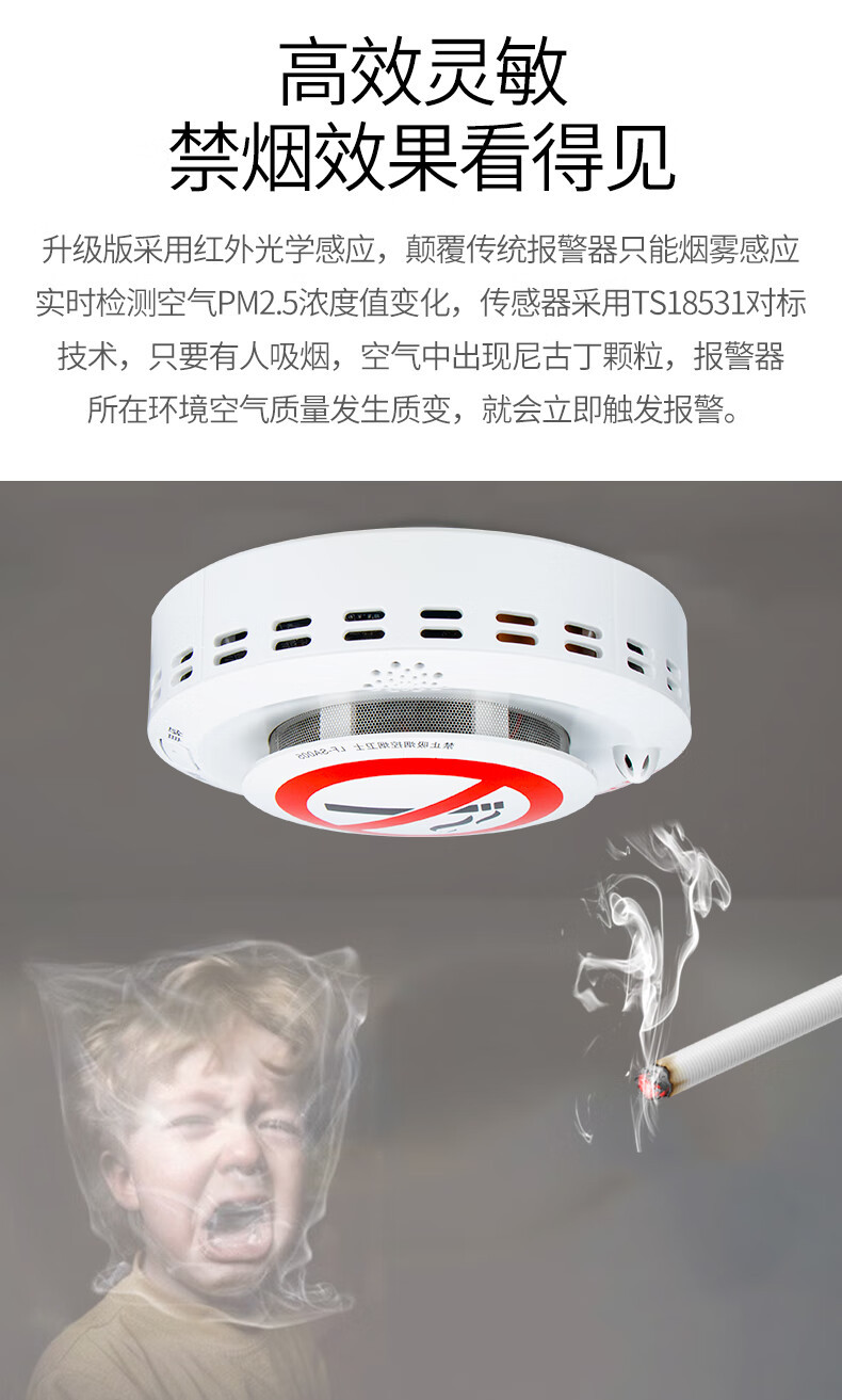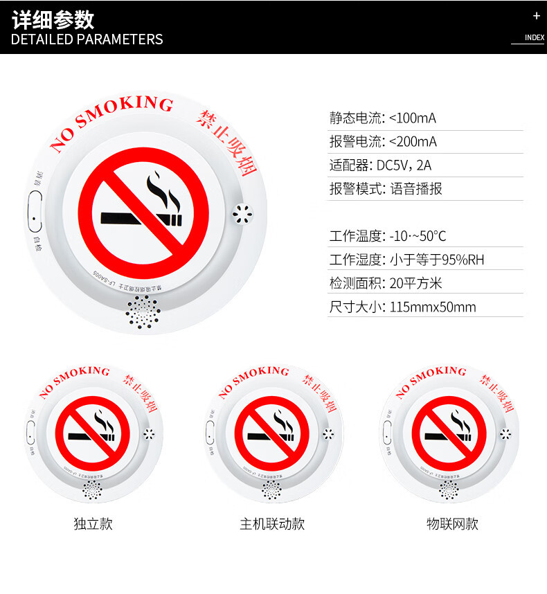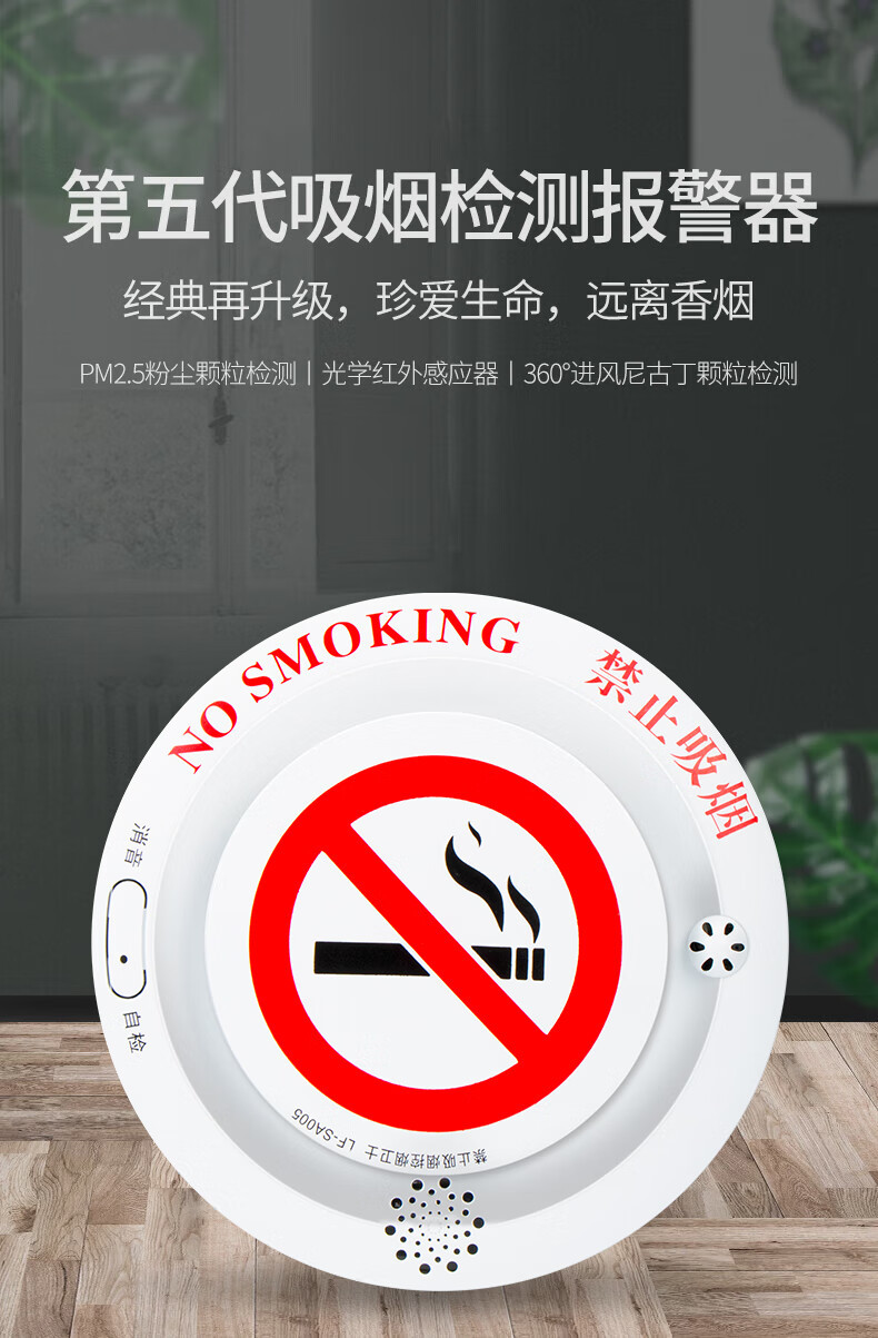 DC5V套LFANG/凌防SA005吸烟探测报警器套装(联动款)-含报警器×1+遥控器×1+电源×1+声光报警器×1