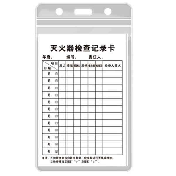 铜版纸+透明软膜70×105mm灭火器检查记录卡套HYSTIC/海斯迪克D款HKK-1系列灭火器检查记录卡-卡片尺寸70×105mm 卡套尺寸80×130mm 含卡套×1+卡片×1+扎带×1