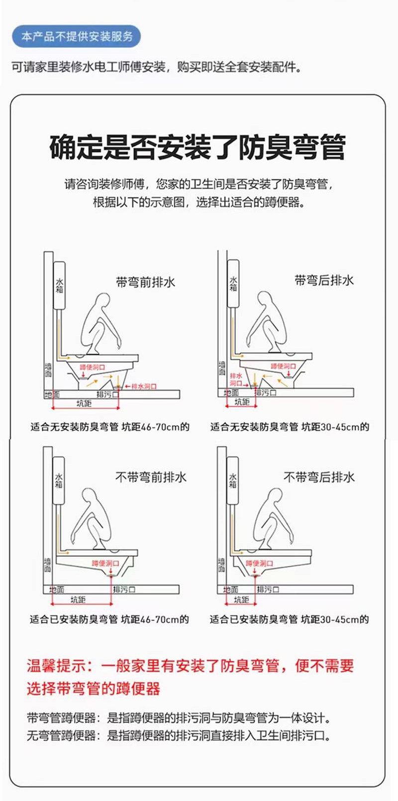 ·带弯双用,前后排出水,入地式安装