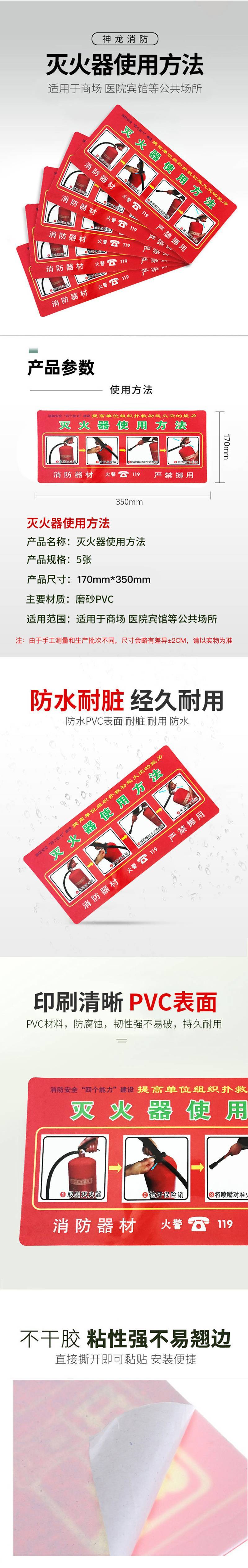 350×170mmPVC灭火器使用方法5张/包包SHENLONG/神龙灭火器使用方法安全标识灭火器使用方法安全标识5张/包350×170mm PVC 5张