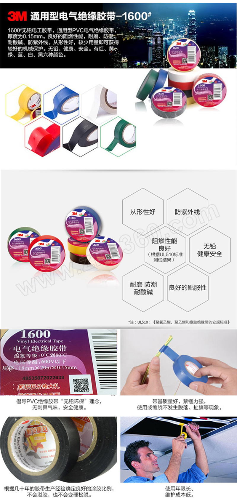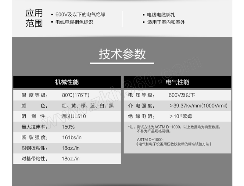 ·用于绑扎电线和电缆 ·适用于室内和室外 ·用于修补高压电缆接头的护套 ·600V及以下电气绝缘电线电缆相识标色 ·用于电压等级600V以下的所有电线和电缆接头的主绝缘