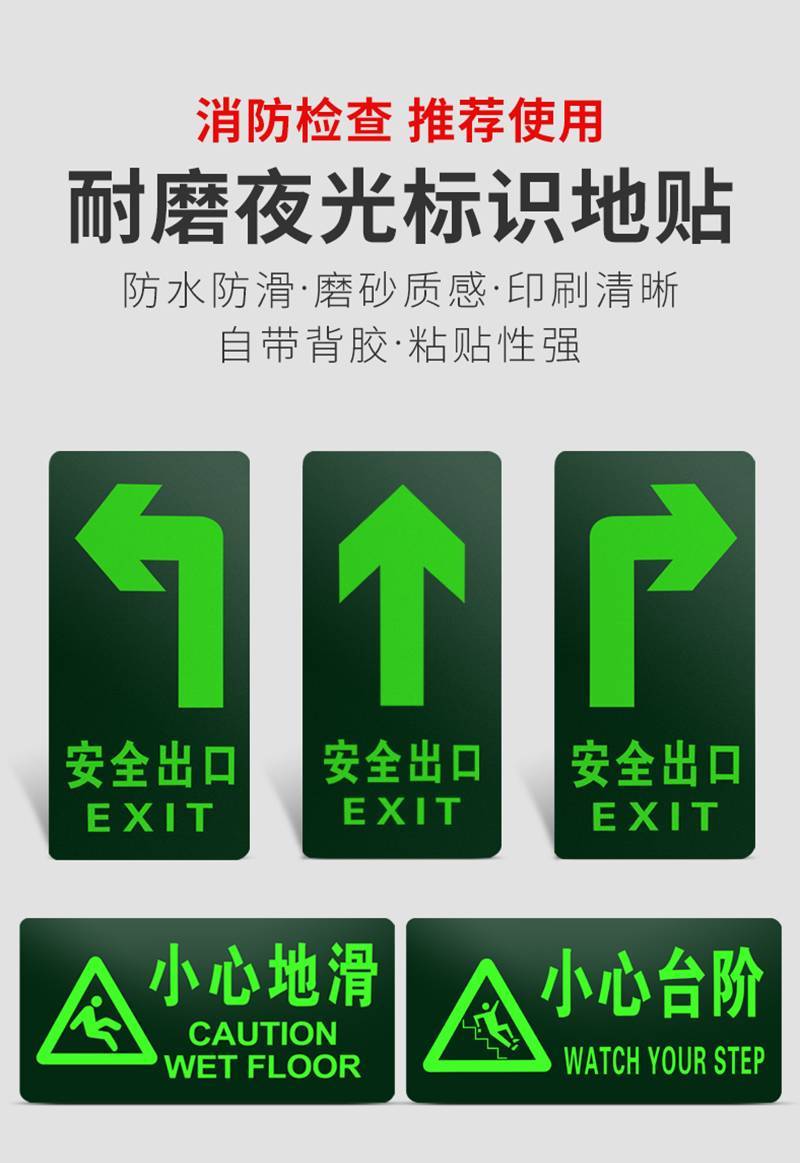 - 产品名称:安全出口直行消防标牌夜光地贴