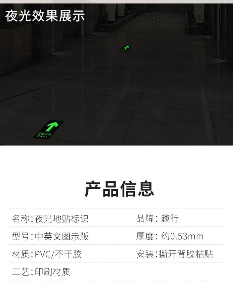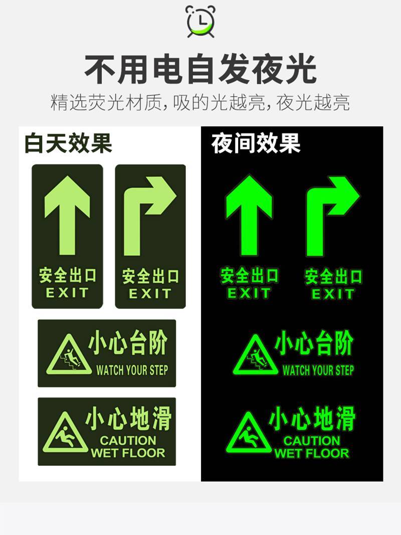 ·自带背胶,撕开即贴,PVC材质可弯,吸光自发光夜光,磨砂表层防滑防水,耐磨