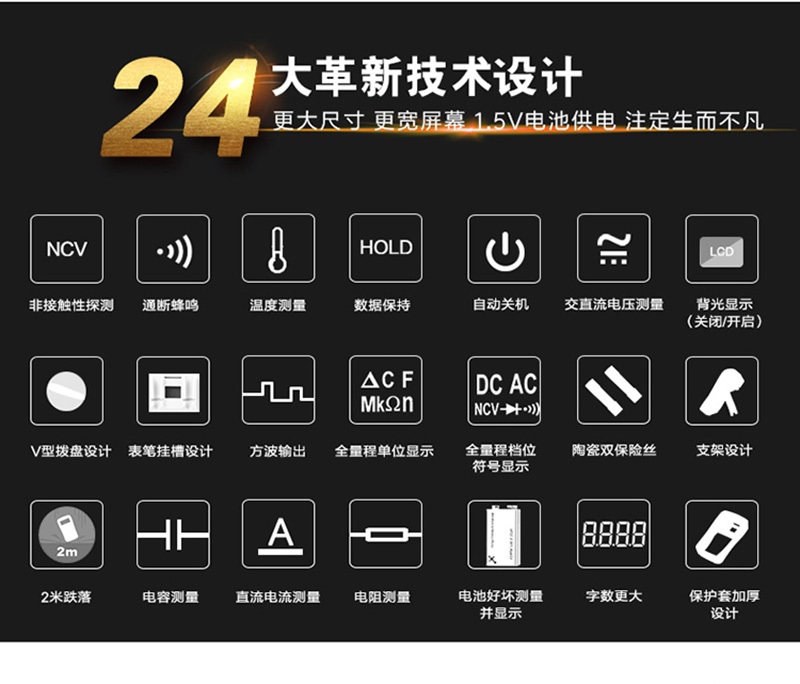 - 电阻量程:200Ω/2000Ω/20kΩ/200kΩ/20MΩ