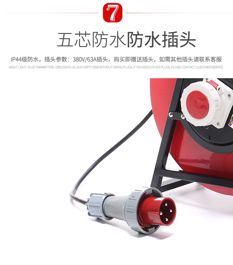 ·有防雨、防尘、防喷溅保护 ·有高温阻断安全装置。对电缆盘设置过热过载保护器,及电磁式漏电保护器,双保险。当电缆盘温度过高时自动断电保护电缆盘,防止发生火灾。