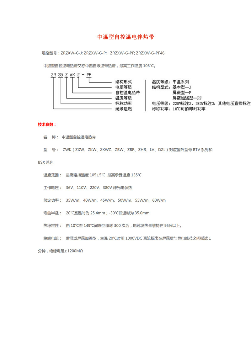 - 产品名称:中温自控温防爆防腐型电伴热带