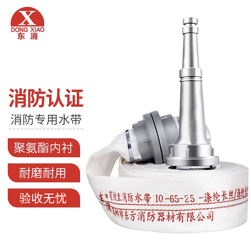 1MPa涤纶长丝+聚氨酯25m65mm内扣式套铝圈压扣否5套/袋10-65-25DONGXIAO/东消聚氨酯有衬里消防水带(含接扣+水枪)5套/袋工作压力1MPa 口径65mm 长25m 聚氨酯 含水带×1+接口×1+水枪×1