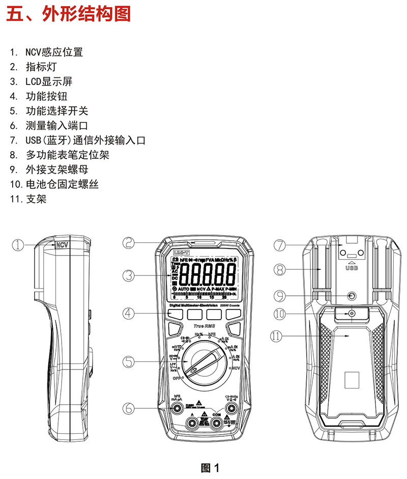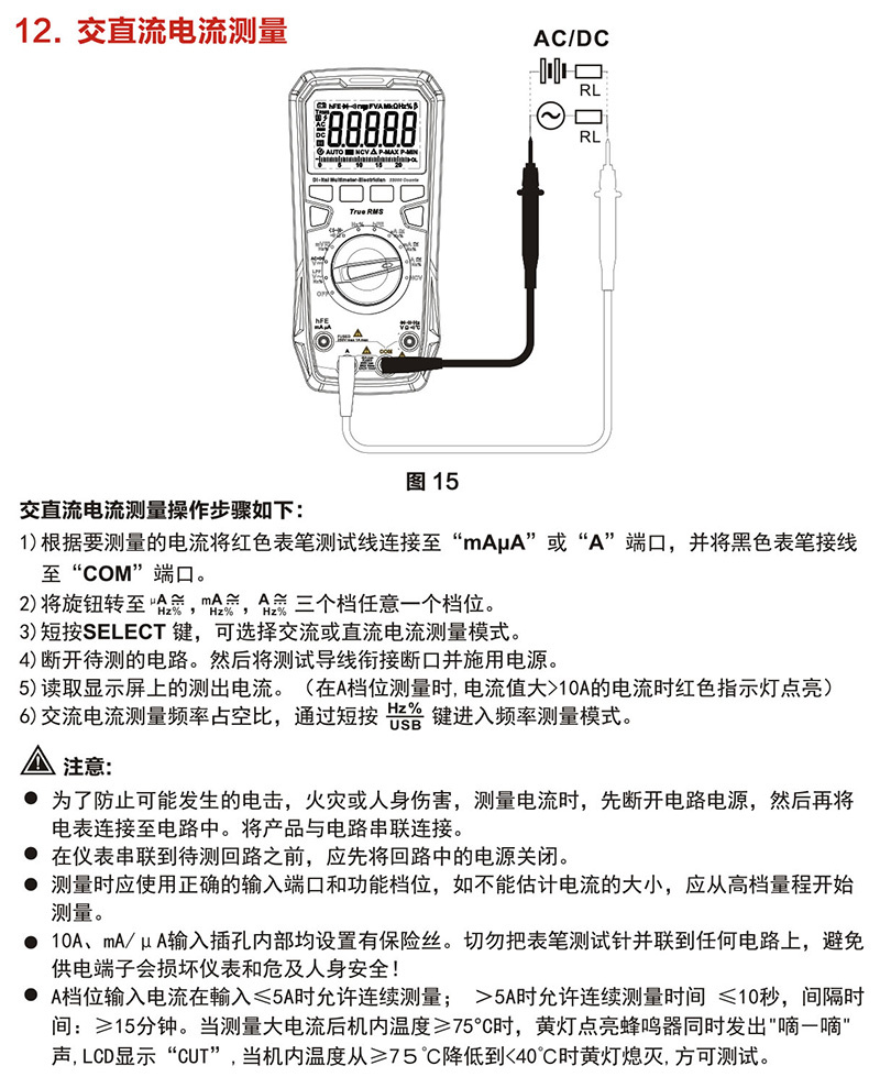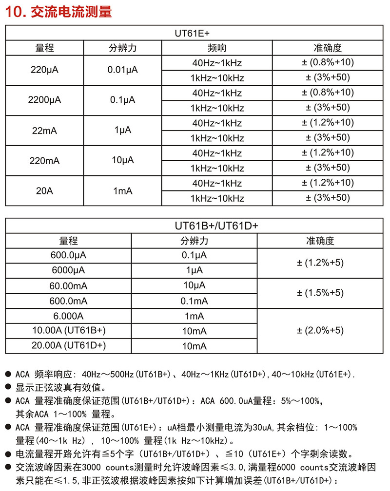 - 交流电流量程:600μA/6000μA/60mA/600mA/6A/20A