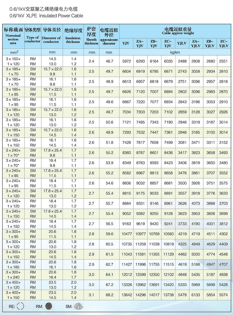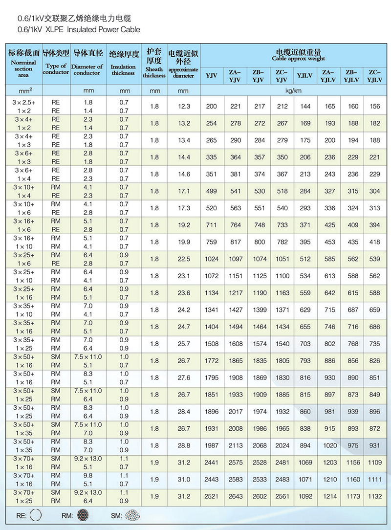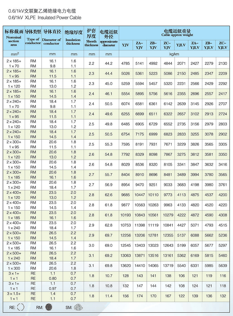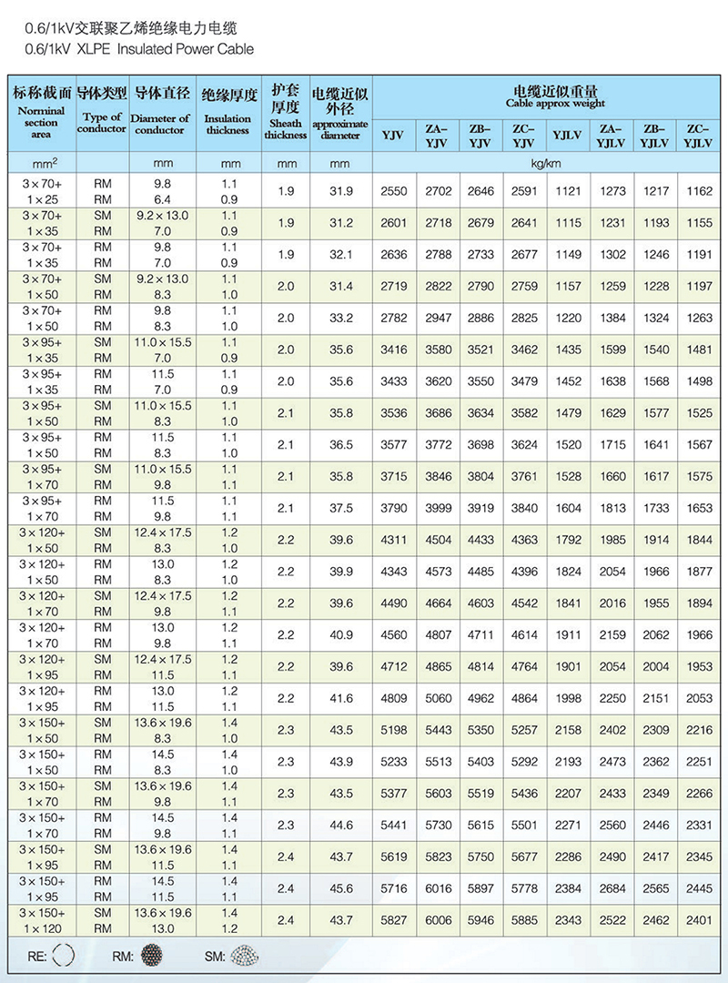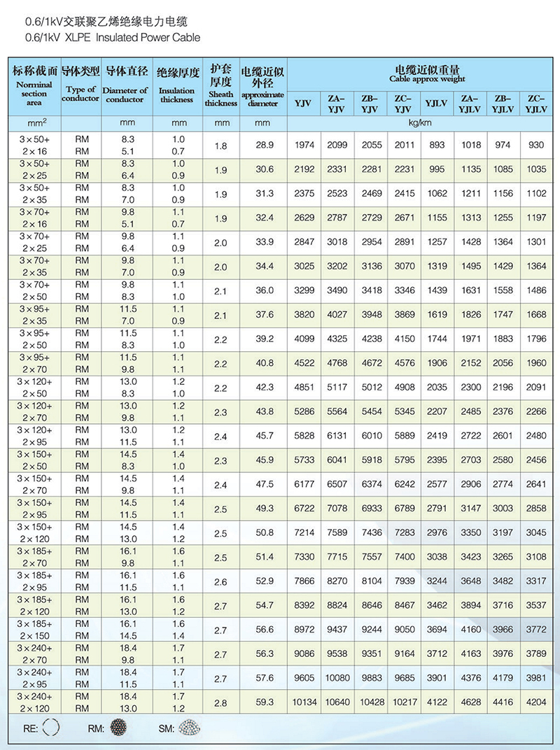 - 制造商型号:ZC-YJV-0.6/1kV-3×70+2×35