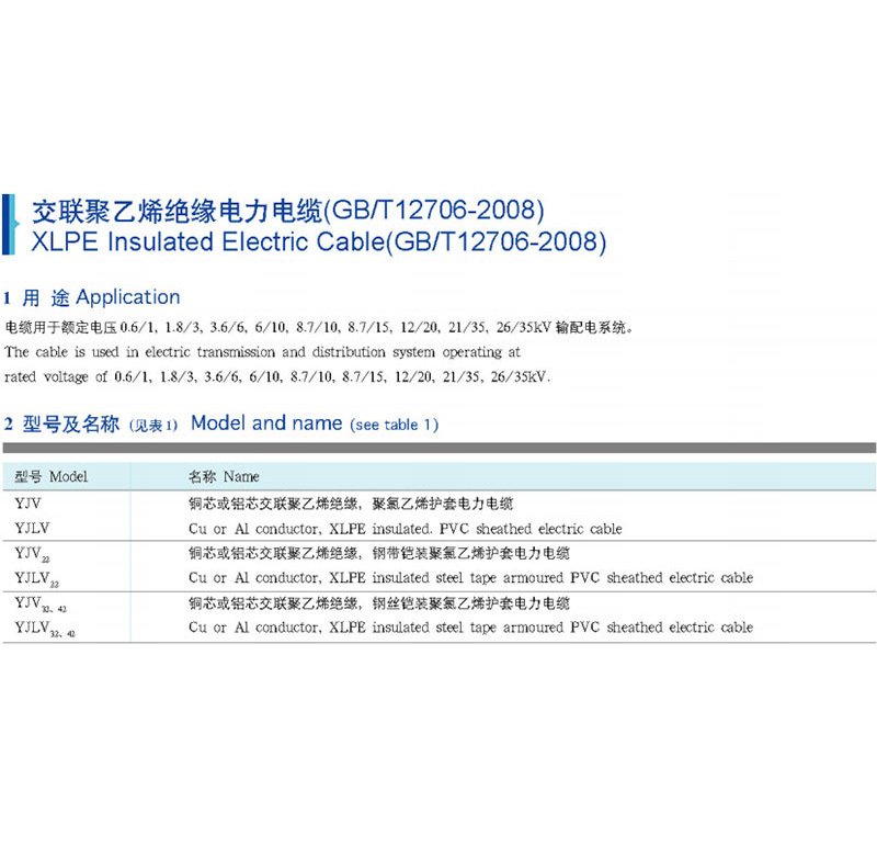 - 产品名称:铜芯交联聚乙烯绝缘聚氯乙烯护套C级阻燃电力电缆