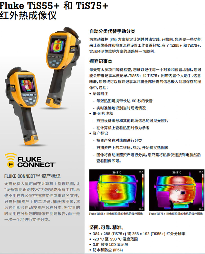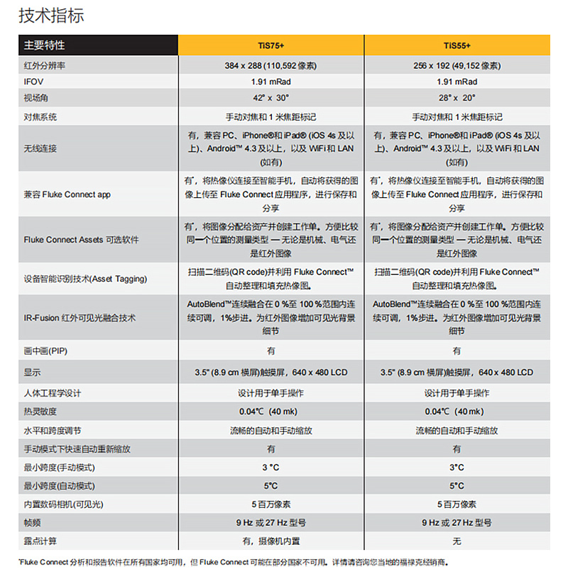 1.91mrad-20~550℃±2℃/2%(取大值)384×288有FLUKE/福禄克红外热像仪TIS75+红外热像仪--