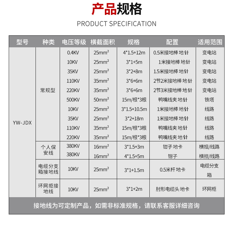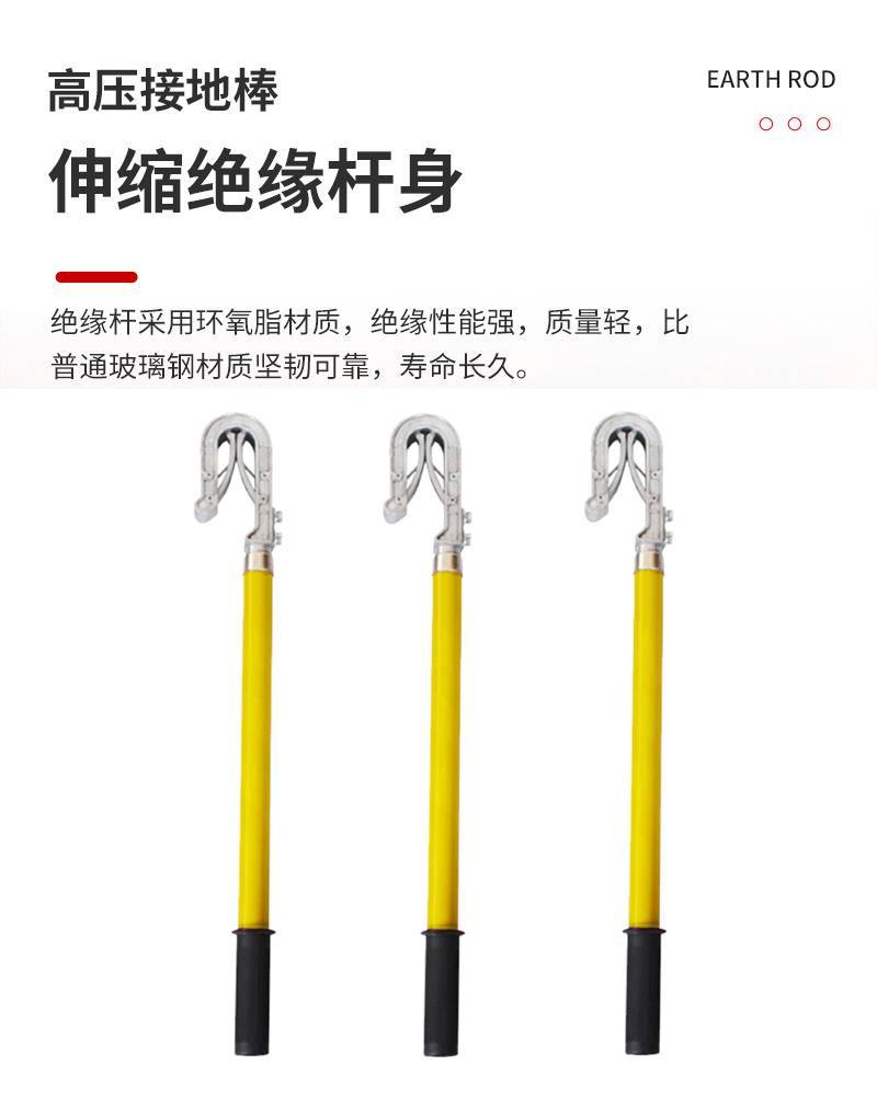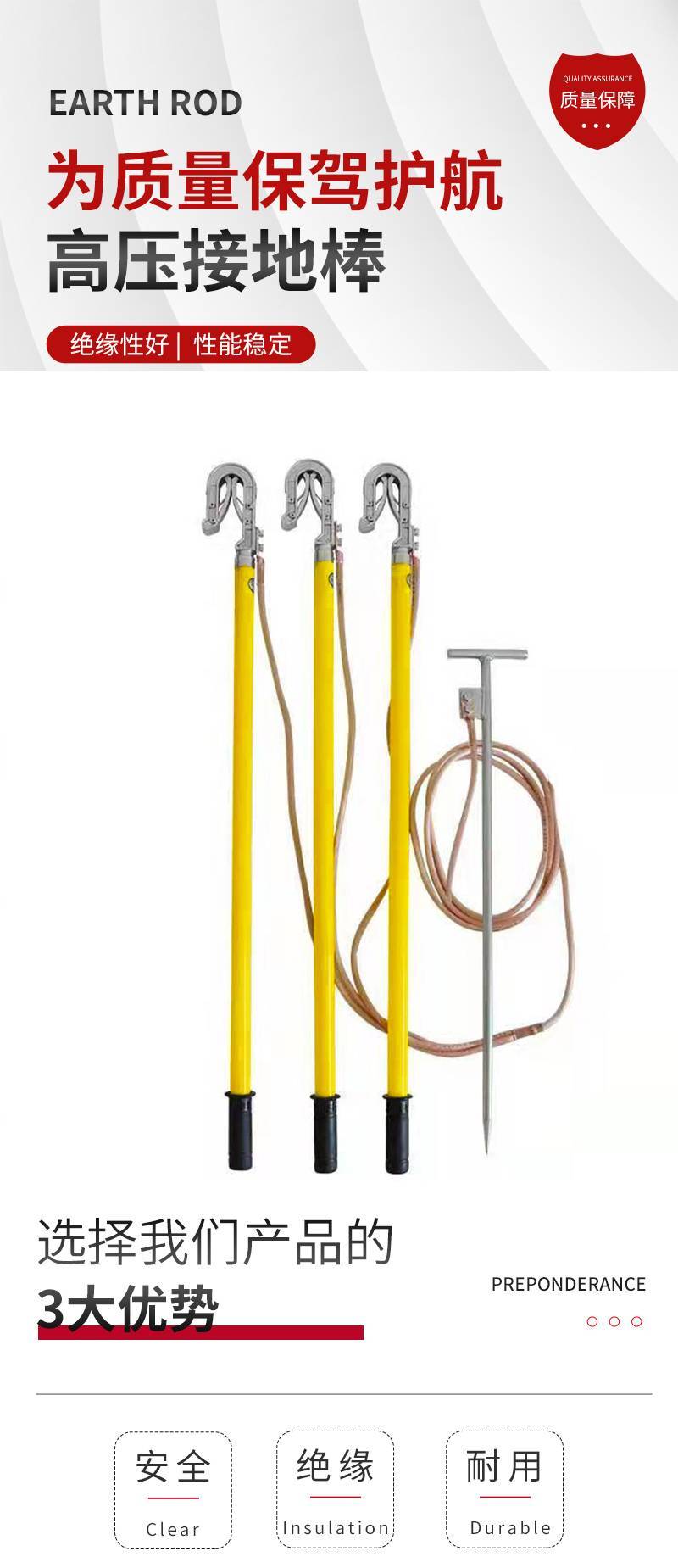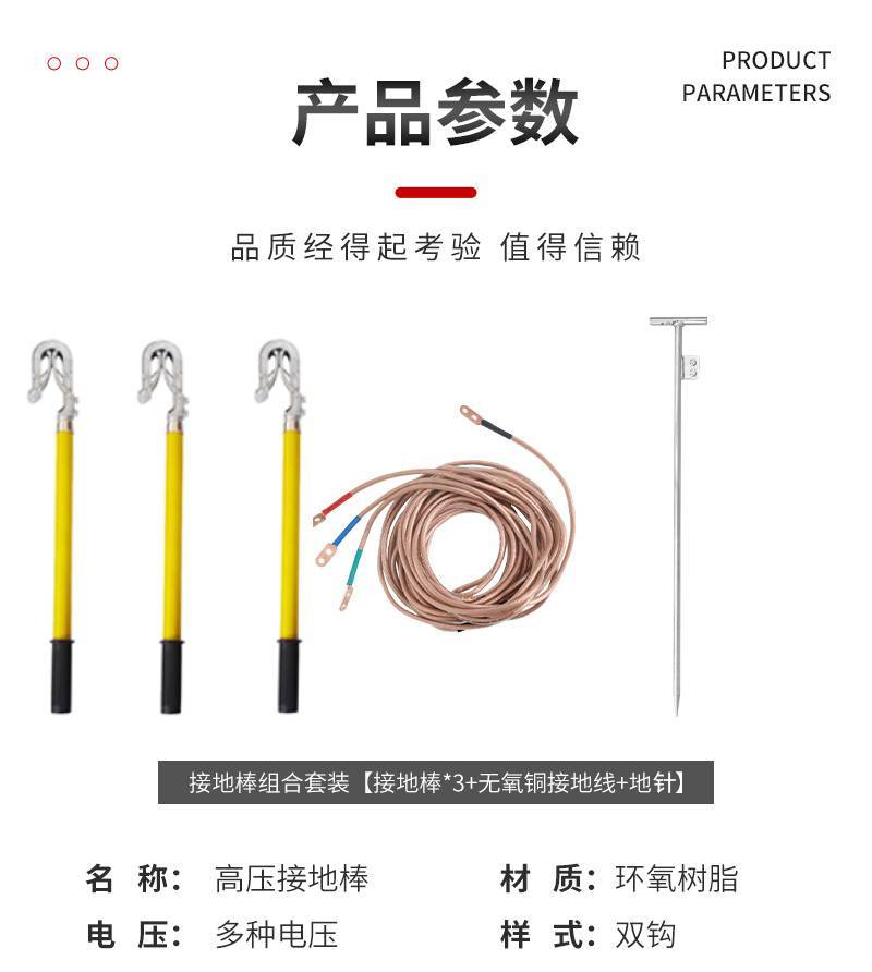 ·软铜线:采用多股优质软铜线绞合而成,外覆柔软耐高温的透明绝缘护层。接地棒:环氧树脂管材,硬度高,不易损坏。