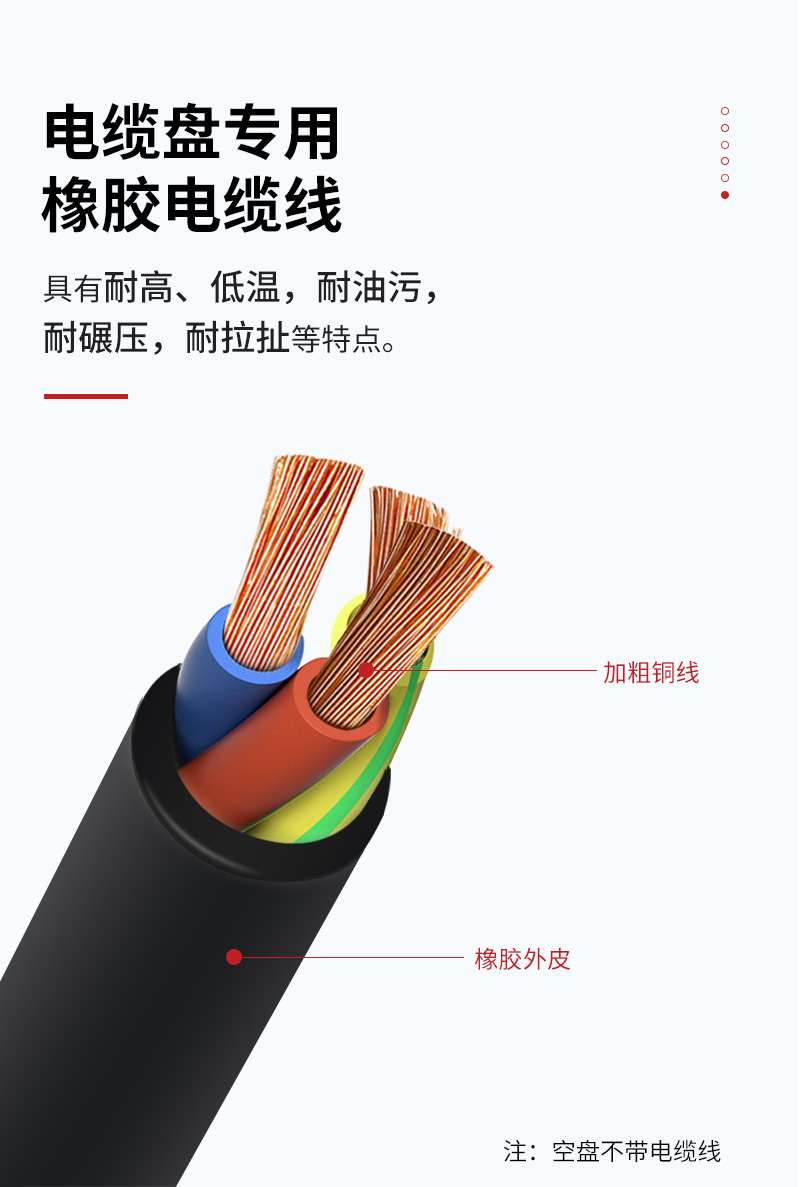 ·电缆盘受外力因素(温度、湿度、风力、雷电、人为等)影响大 因此无论施工建设还是家庭应用 在购入电缆盘前一定要了解电缆盘的选择标准