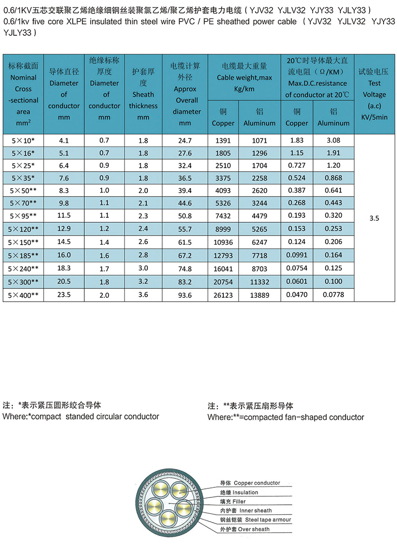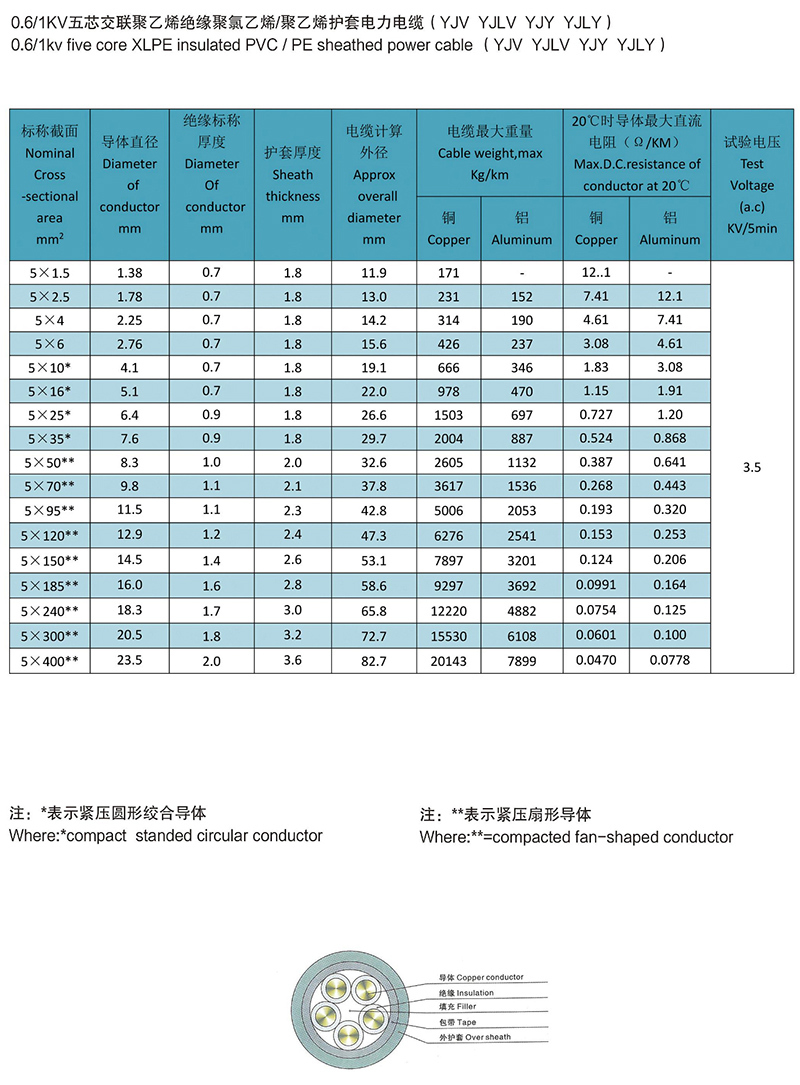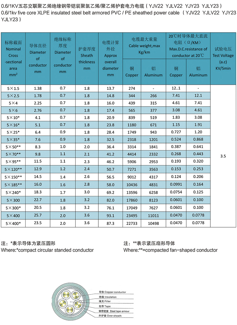 - 制造商型号:ZC-YJV-0.6/1kV-5×16