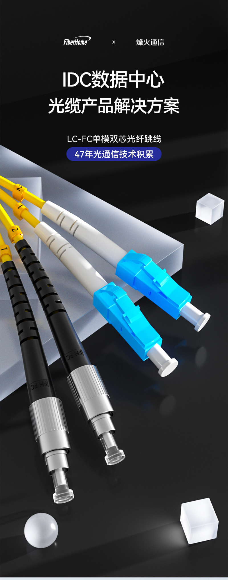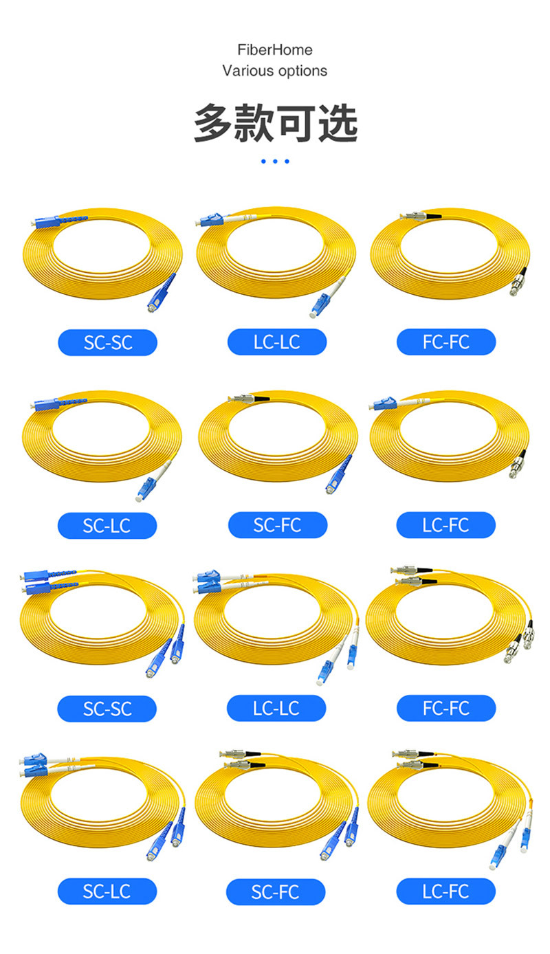 LC-FC-3M双芯3m黄色单模FC-LC条否FIBERHOME/烽火通信单模双芯光纤跳线-黄色
