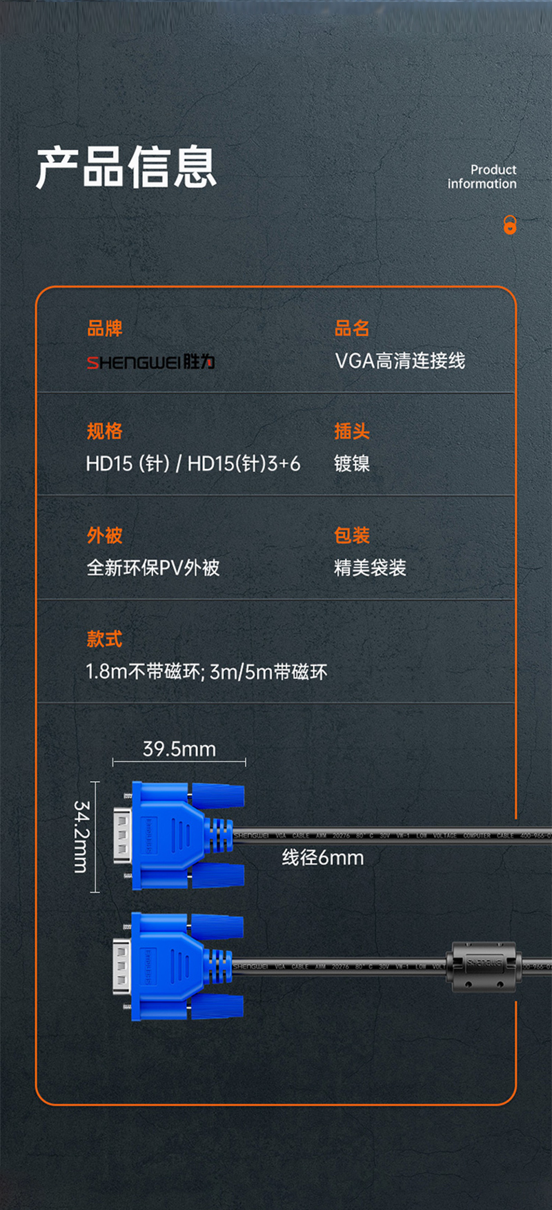 - 产品名称:VGA线(3+6延长线)