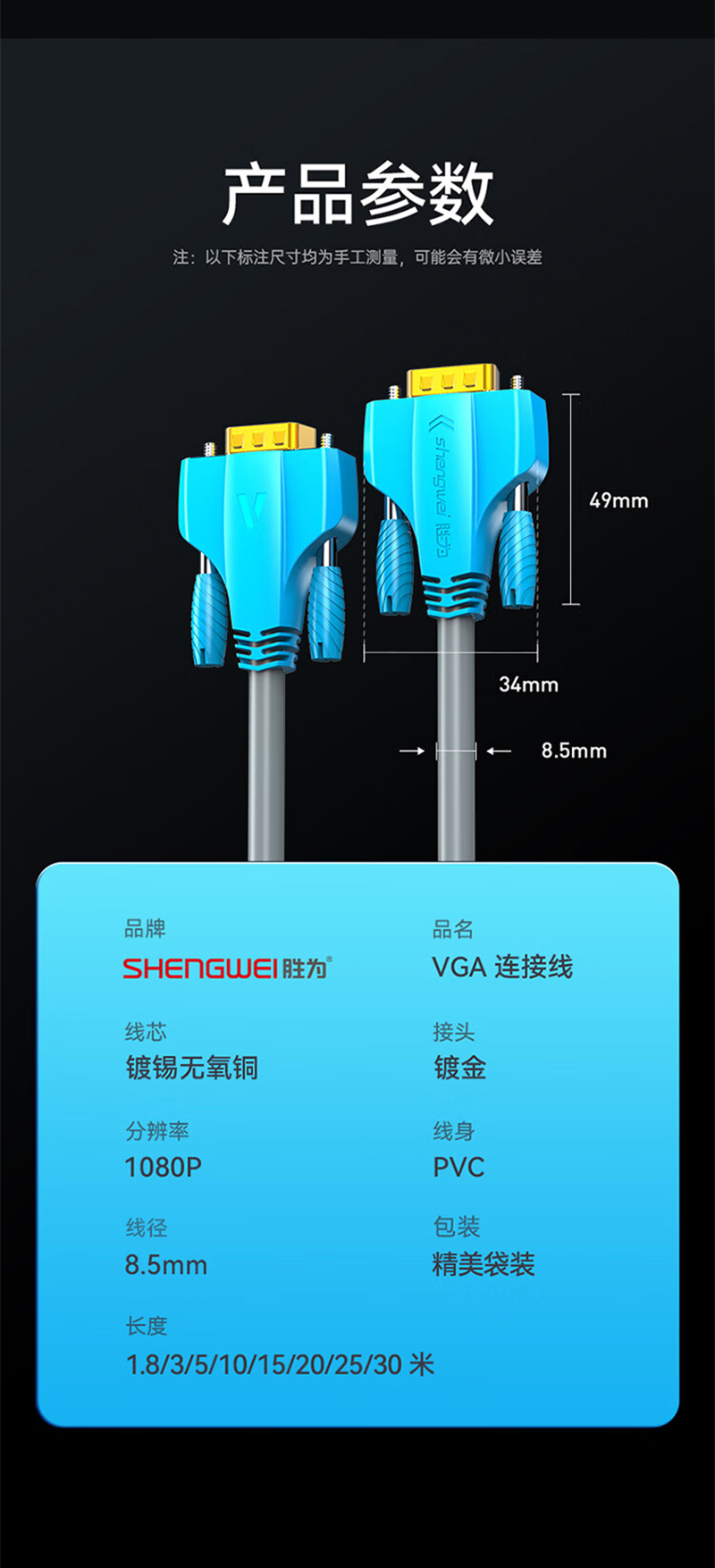 1.8米/根1.8m黑色VGA线根SHENGWEI/胜为VC-8018VGA线 3+9线(工程级)-1.8m