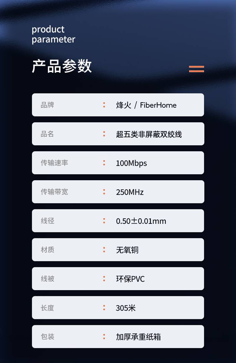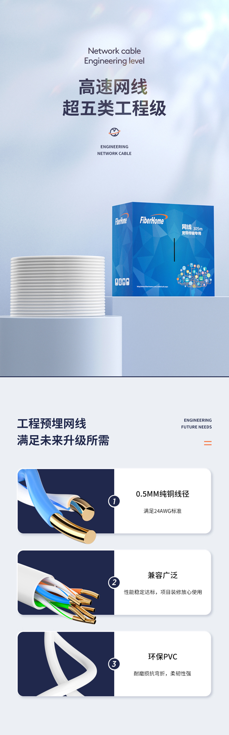 305米/卷305m灰色网线箱FIBERHOME/烽火通信宽带传输网线超五类非屏蔽(U/UTP) PVC 灰-305m